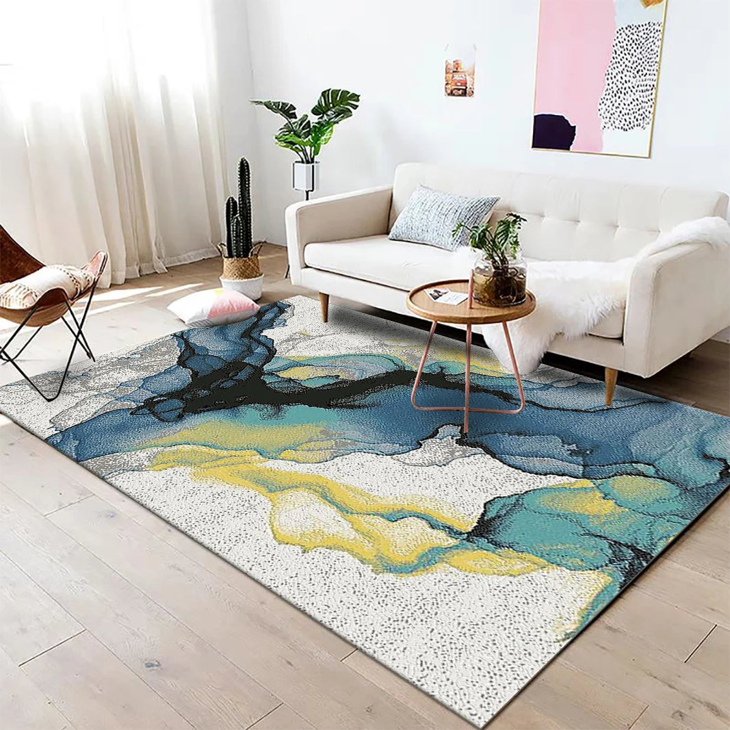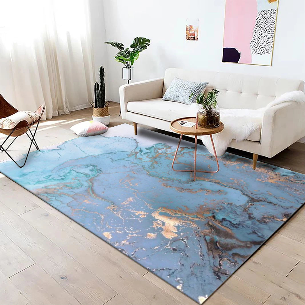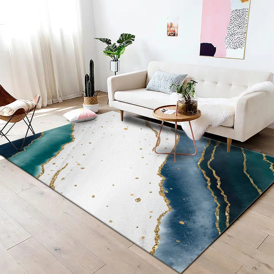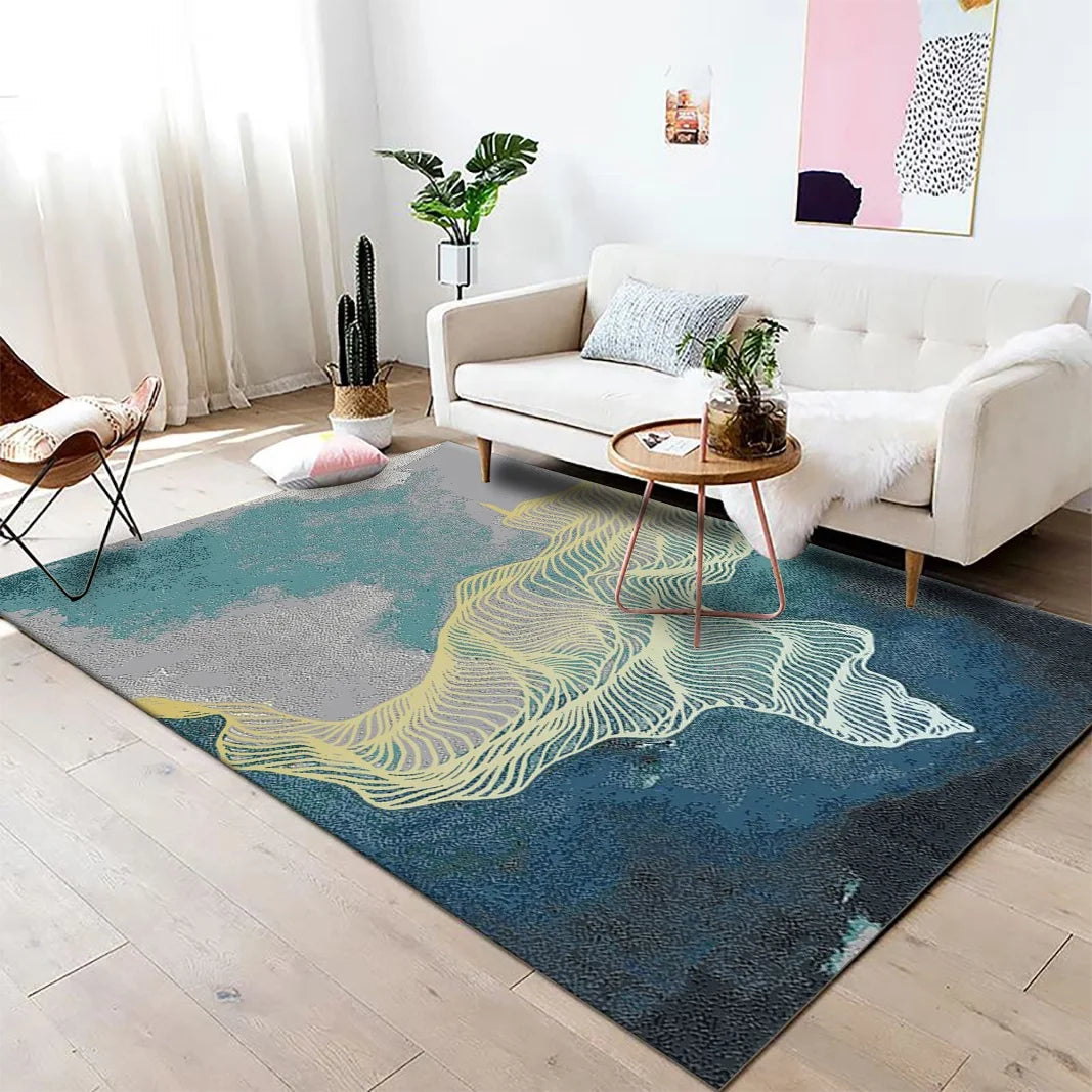 Blue Gold Oil Painting Abstract Carpet Living Room Modern 3D Rugs
