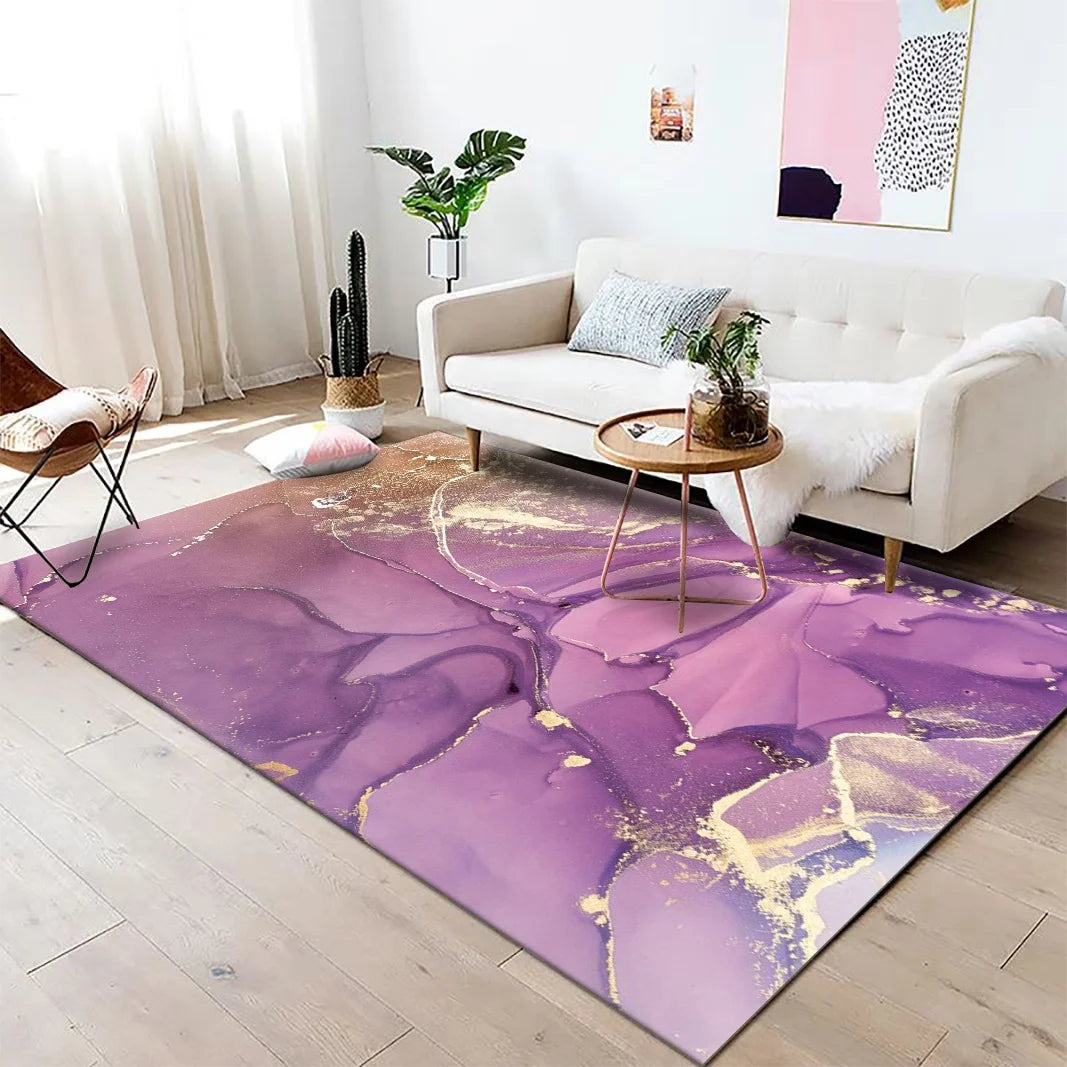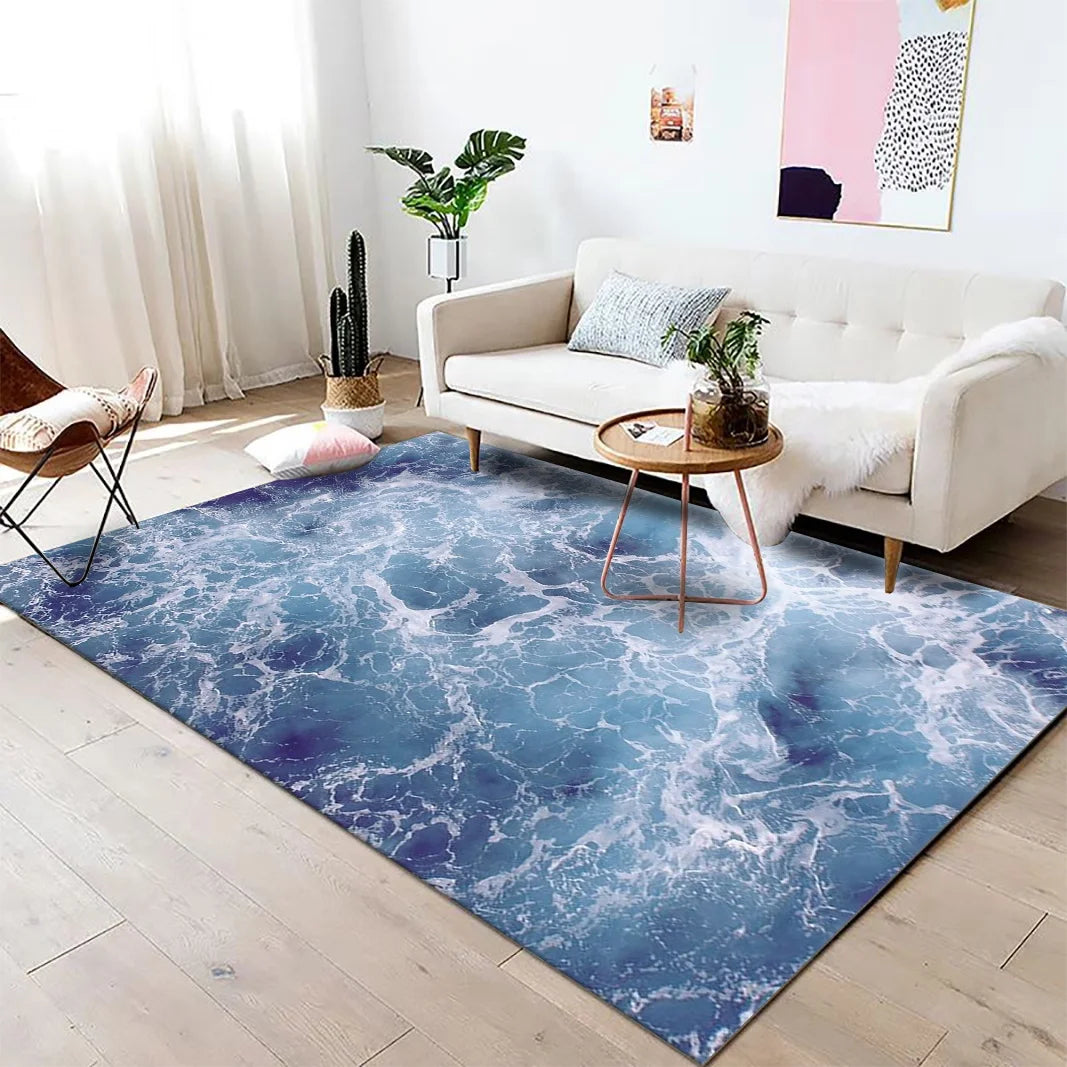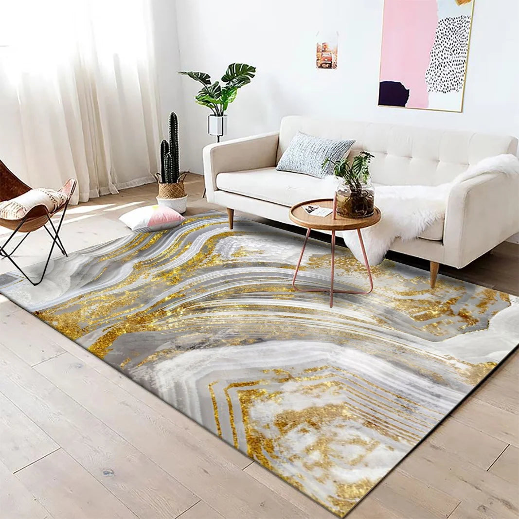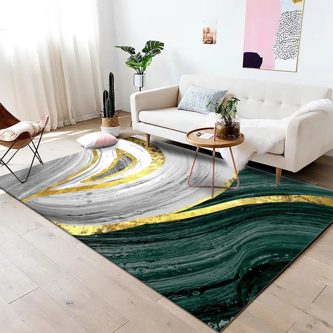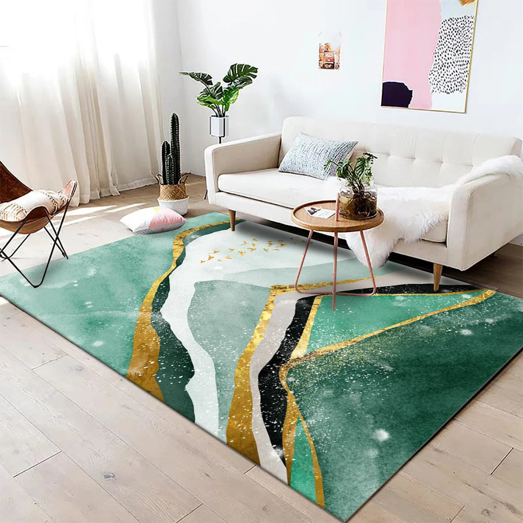 Blue Gold Oil Painting Abstract Carpet Living Room Modern 3D Rugs