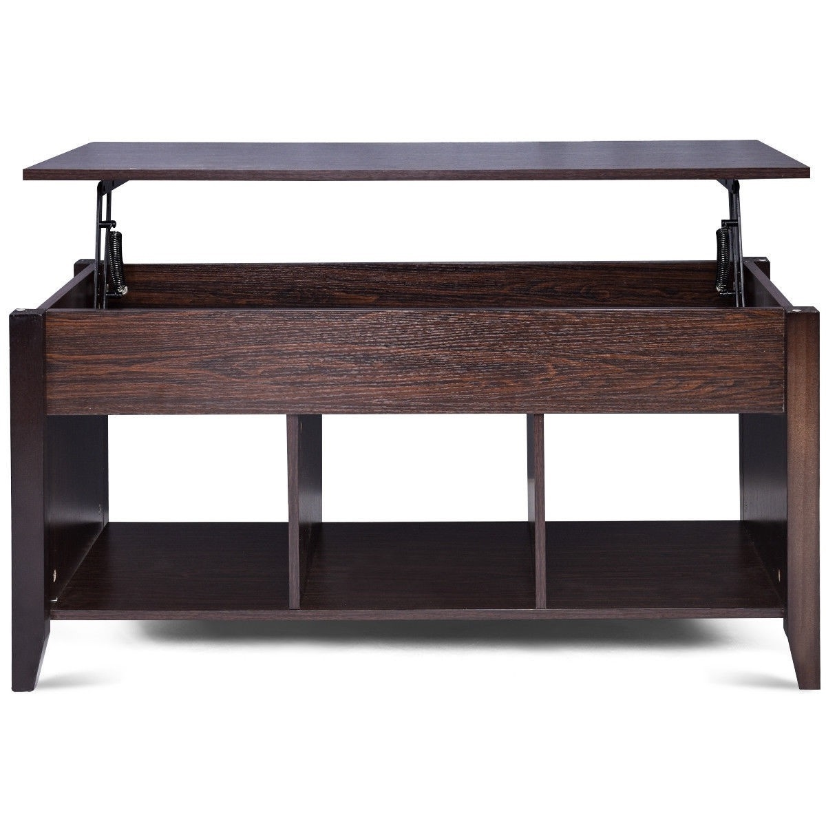 Brown Wood, Lift-Top, Coffee Table, Bottom, Storage Shelves
