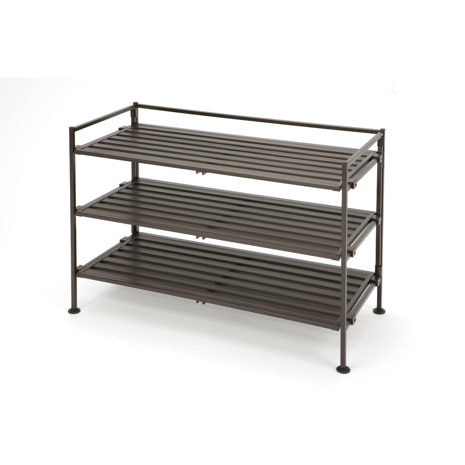 - Classic Stackable Folding Utility Shoe Rack in Mocha Finish