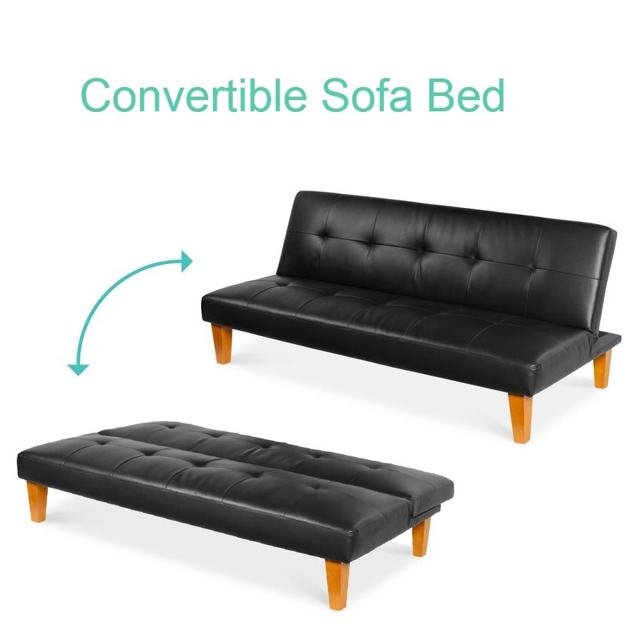 Convertible, Faux, PU, Leather, Tufted, Lounge, Futon, Sofa, Bed, Adjustable, Back, Black