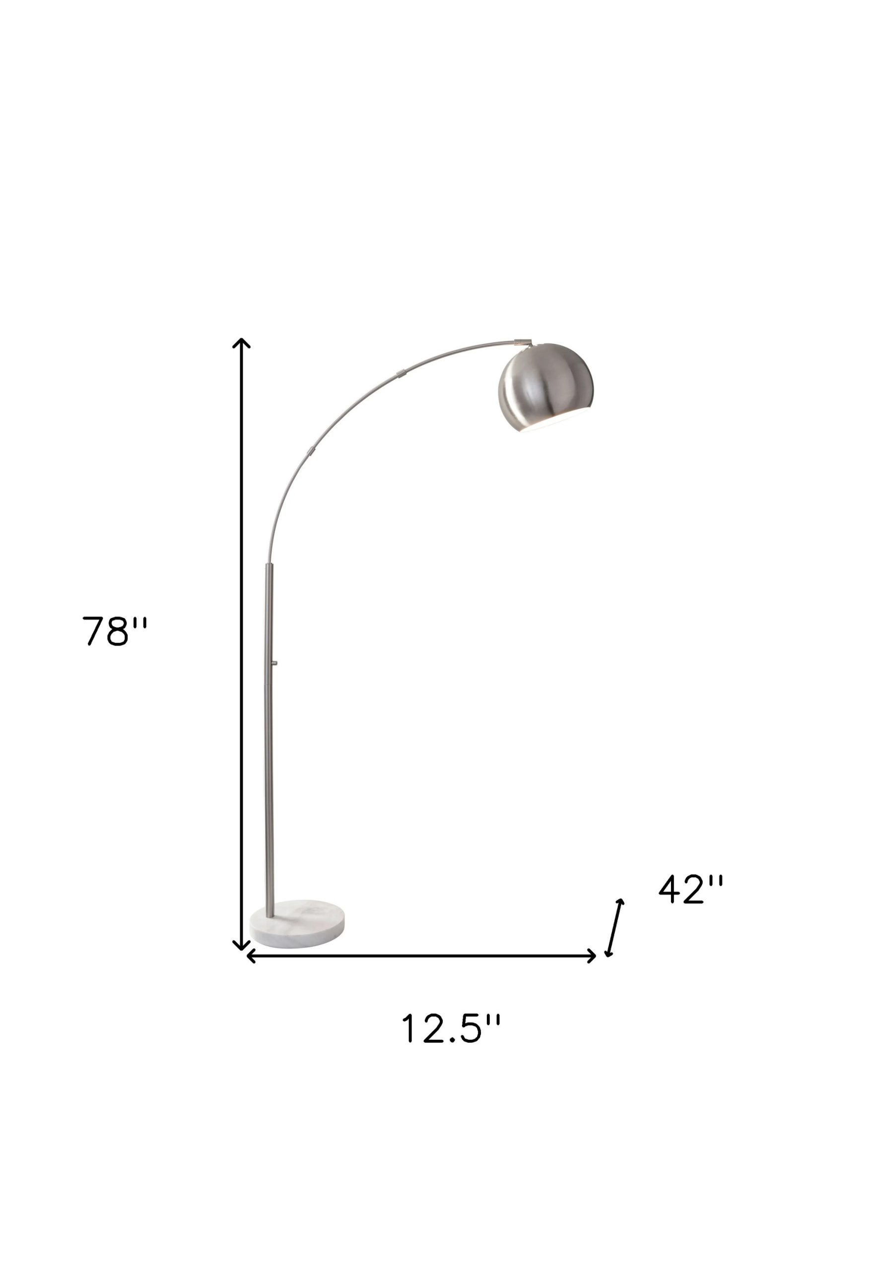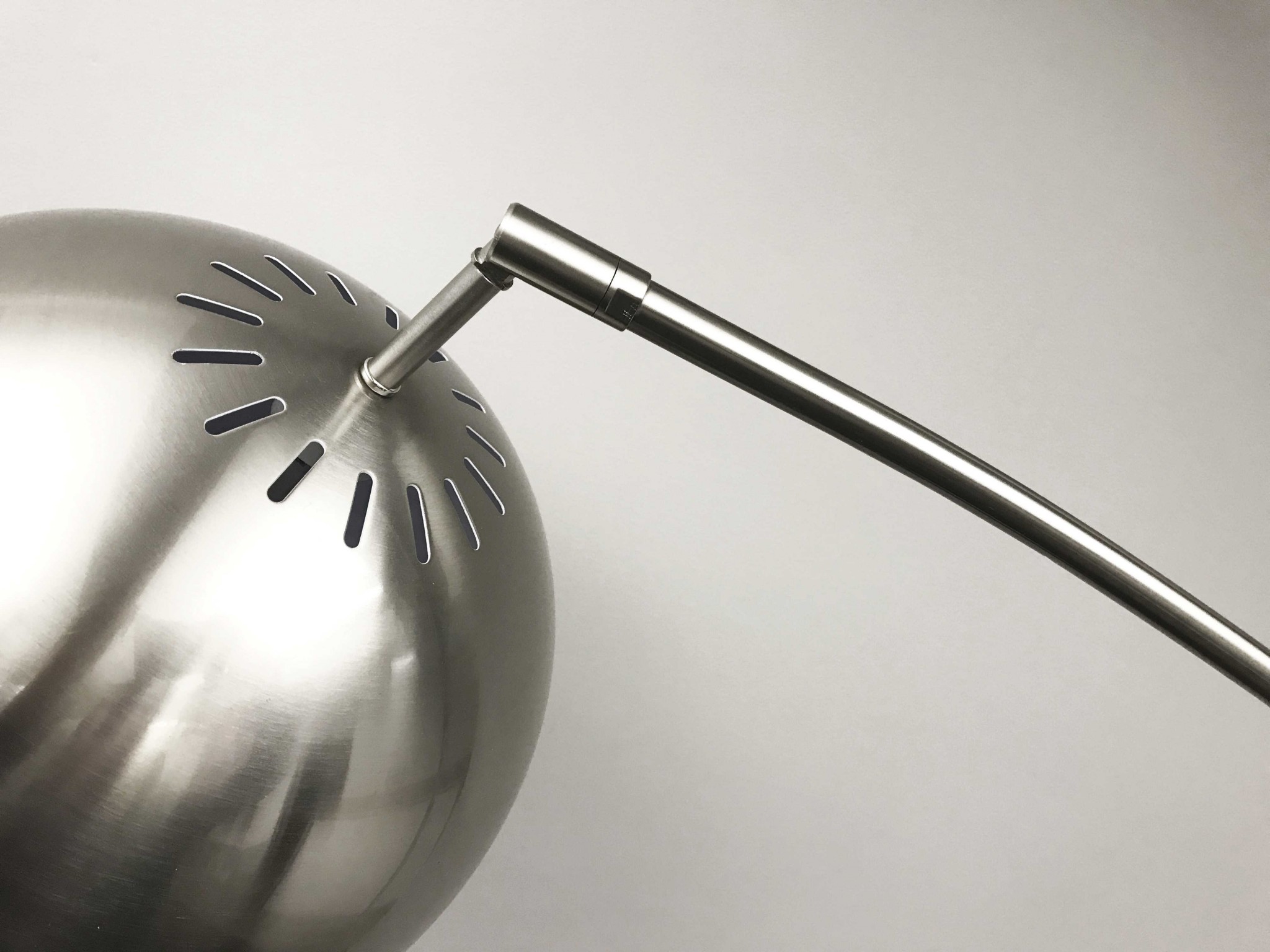 Curved Arm Floor Lamp with Spherical Satin Steel Shade