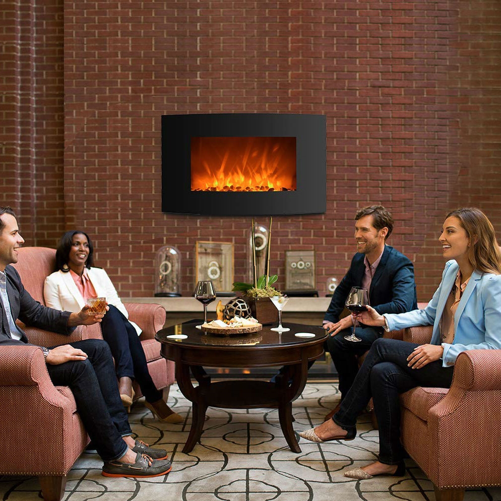 Curved Wall Mount 35-inch Electric Fireplace Heater Easy wall mounting With our Electric Heater, you don’t have to worry about stacking firewood or cleaning up the ash NOTE: This heater fireplaces is hot when in use To avoid burn, do not let bare skin touch hot surfaces Keep combustible, paper, and fabric materials at least 3 feet (0.9m) away from the fireplace Fireplace Electric Heater LED fireplace Standing Fireplace Wall Mounted Fireplace Safe and efficient use This Electric fireplaces requires less energy to heat a room It is safe for children and pets because the LED bulbs of this Electric Heater are cool to touch and mercury free This electronic fireplace has two heating settings: 750watt (2559BTU) and 1500watt (5118BTU), Equipped with a safety shut-off device, safe and effective Humanized design The true flame of this electronic fireplace is set in a pile of artificial crystals (included), lending a home-like appeal to a real fireplace The crystal of this Electric Heater is located behind a durable tempered glass with a contemporary black frame On a cold night, feel the warmth of our electronic fireplace while enjoying the smoke-free air Wall Mounted Fireplace Heater Fireplace Electric LED fireplace Standing Fireplace Remote Control This electric fireplace will be decorated as a function of your bedroom, library or family room Elegant and modern electronic fireplace with 3D flame technology for easy remote control The hot spot of our electronic fireplace can be adjusted to your needs to provide even heat distribution This Electric Heater has a built-in safety shut-off device to keep you and your family safe Electric LED fireplace Wall Mounted Fireplace Heater Fireplace Standing Fireplace Energy efficient The sleek and full design of our electronic fireplaces is easy to install on the wall and can also be used as a desktop feature, including a base This modern Electric Heater is energy efficient and has no emissions or pollution Our electronic fireplace can be mounted to the wall or placed on the table, easy and convenient