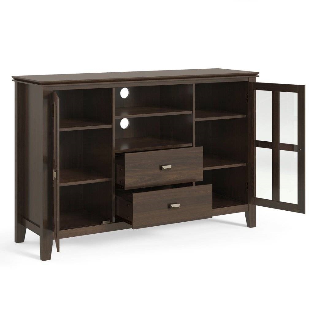 Dark, Brown, Solid, Wood, 35-inch, High, TV Stand, entertainment center,Glass, doors, storage, drawer