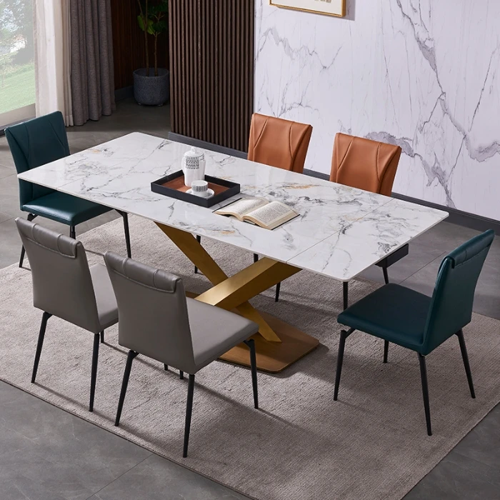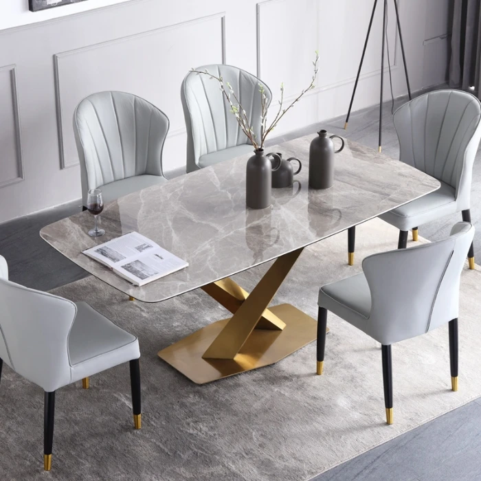 Factory Hot Sale 6 Seat Chair Sintered Stone Top Dinning Set Modern Dining Table