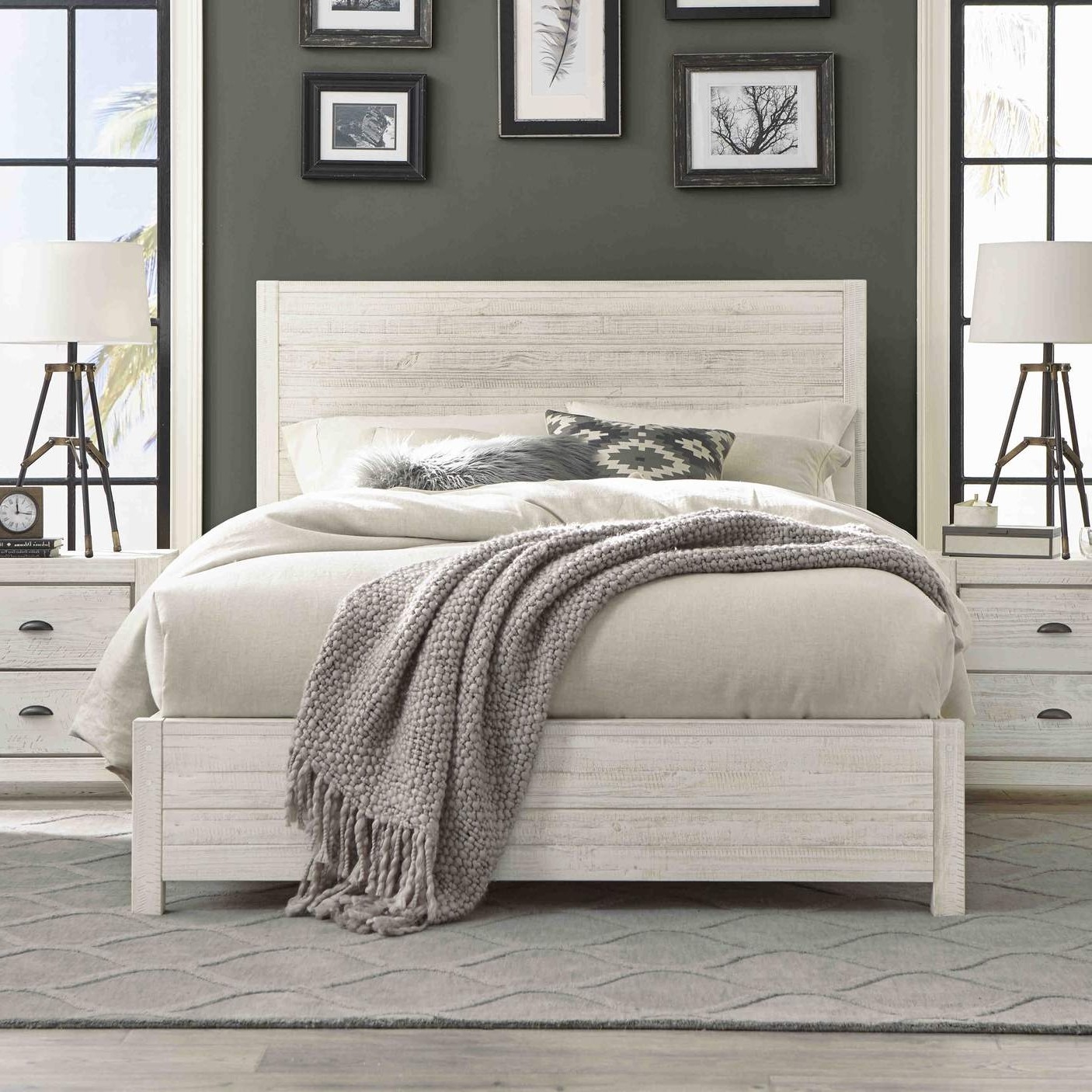 FarmHome Off White Solid Pine Platform Bed in Queen Size
