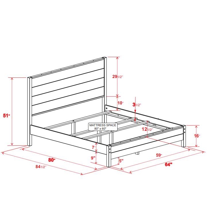 FarmHome, Off White, Solid, Pine, Platform, Bed, Queen Size