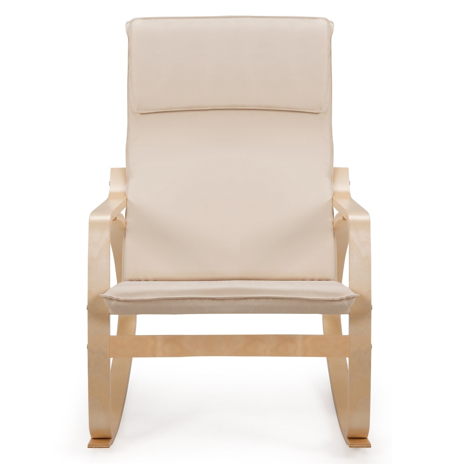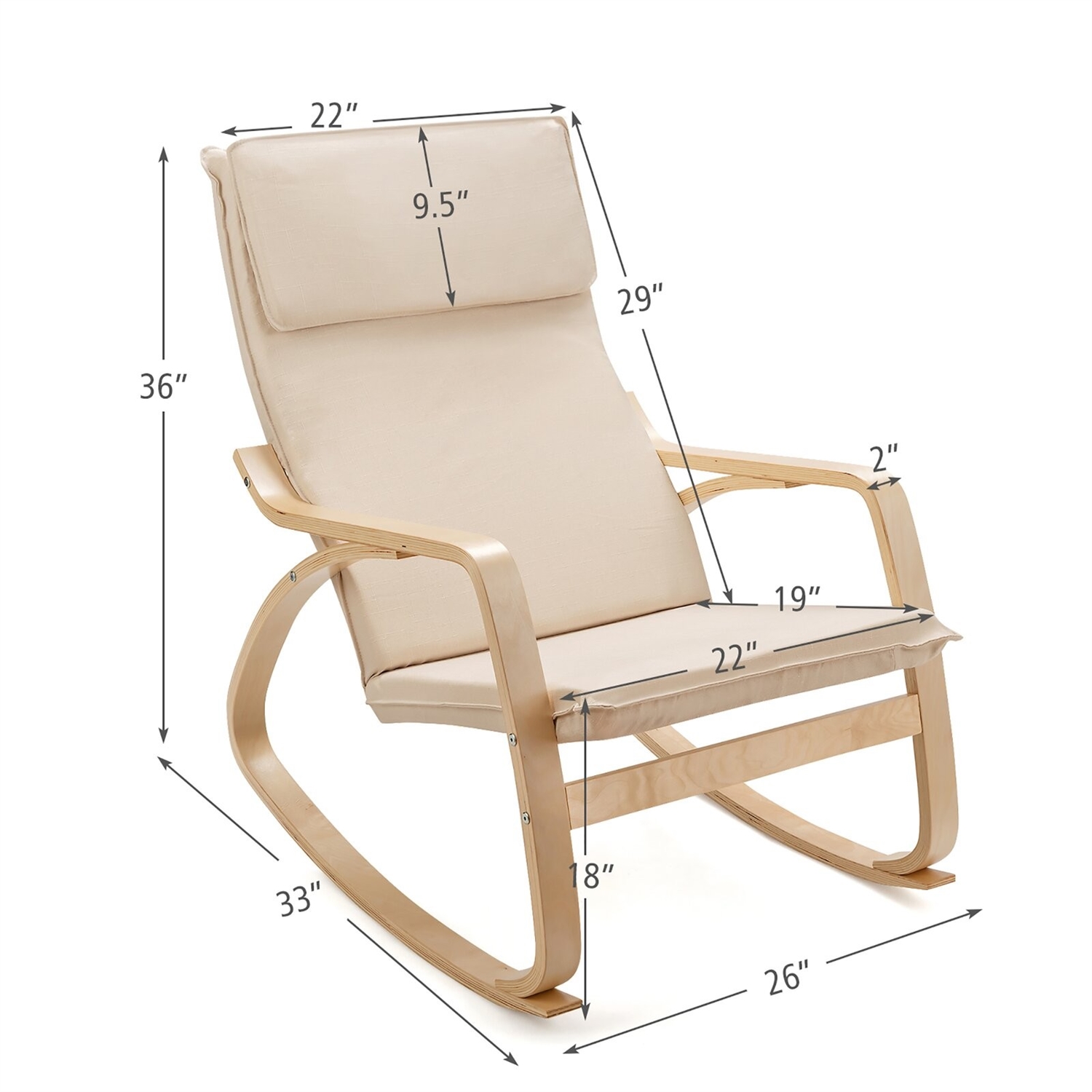 This stylish FarmHome Beige/Natural Linen Upholstered Rocking Chair can not only provide you with a relaxing place but also decorate your house better. Covered by imitation linen fabric and constructed by steel and birch laminate, this single chair is comfortable, durable, and stable. You will sit comfortably and feel relaxed with a cushioned seat and curved armrests. The specially designed arc base with perfect angle can effectively help you relax your body, thus you will have a super smooth and comfortable rocking experience. A high-quality wood frame ensures long-term service so that the ergonomic rocking chair is strong enough to withstand the weight of 330 pounds.
