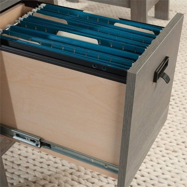 - 2 file drawers with full extension slides hold letter-size hanging files