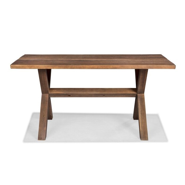 Give your dining room a rustic modern farmhouse look with the warmth of this Farmhouse Walnut Solid Wood Dining Trestle Table. This versatile and neutral design goes well with several chair types, features robust and sturdy wood construction made of 100% solid pine wood from Southern Brazil. Its distressed and rustic finish is very durable and easy to touch-up.