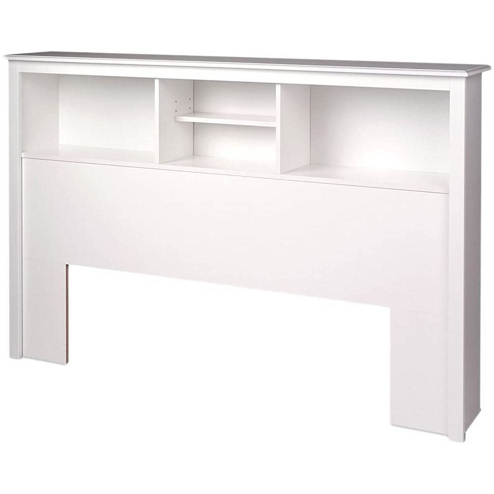 - Full Queen size Stylish Bookcase Headboard in White Wood Finish