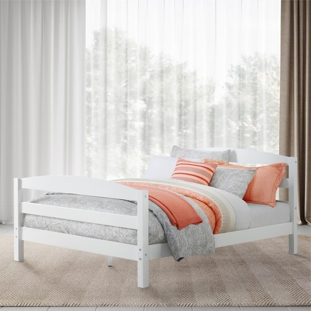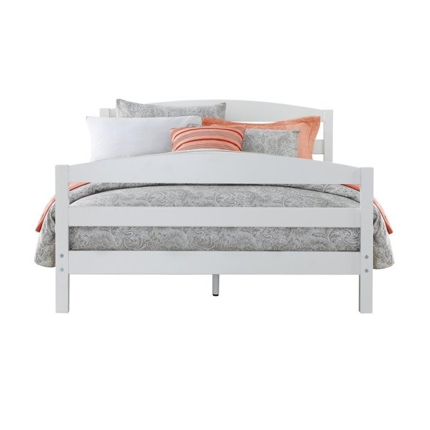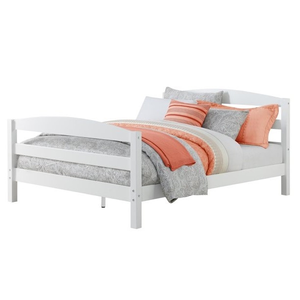 It’s the perfect time to update your kids, guest room, or bedroom décor with the Full Size Minimalist Platform Bed Headboard Footboard in White. This sturdy full size bed’s minimalist design features an arched, open-slat headboard and matching footboard for a simple yet stylish profile. The side rails and slats are included and no boxspring is needed.