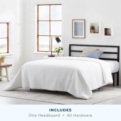 - All steel headboard with a matte black finish is a sturdy and stylish option to finish any bedroom in your home