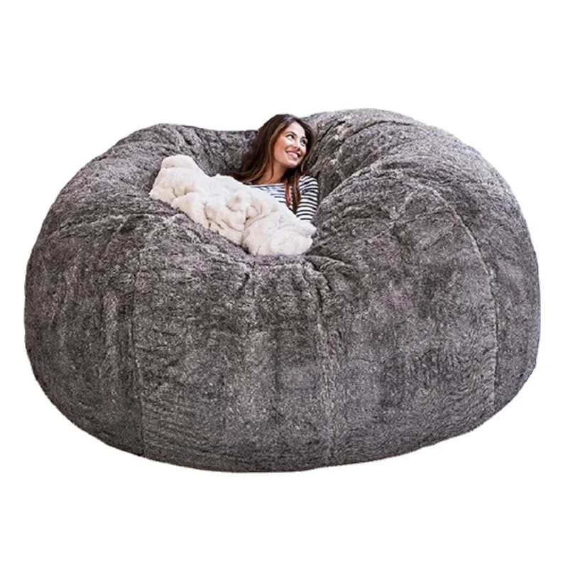 Furniture Giant Washable Soft Fluffy Faux Velvet Big Lazy 6ft Sofa Bed Kids Bean Bag Cover Fabric Living Room Chair