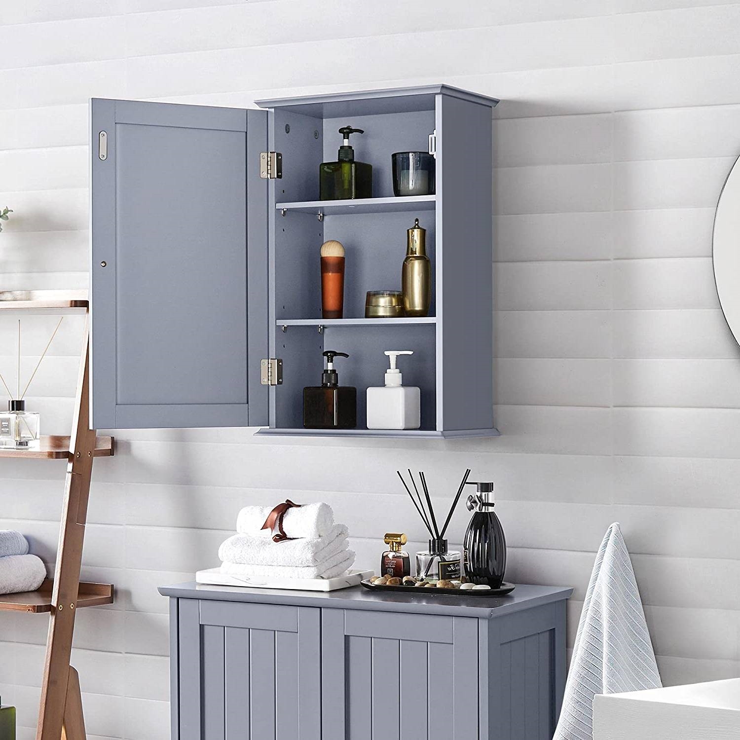 - Gray 1-Door Wall Mounted Bathroom Medicine Cabinet Kitchen Storage Cupboard