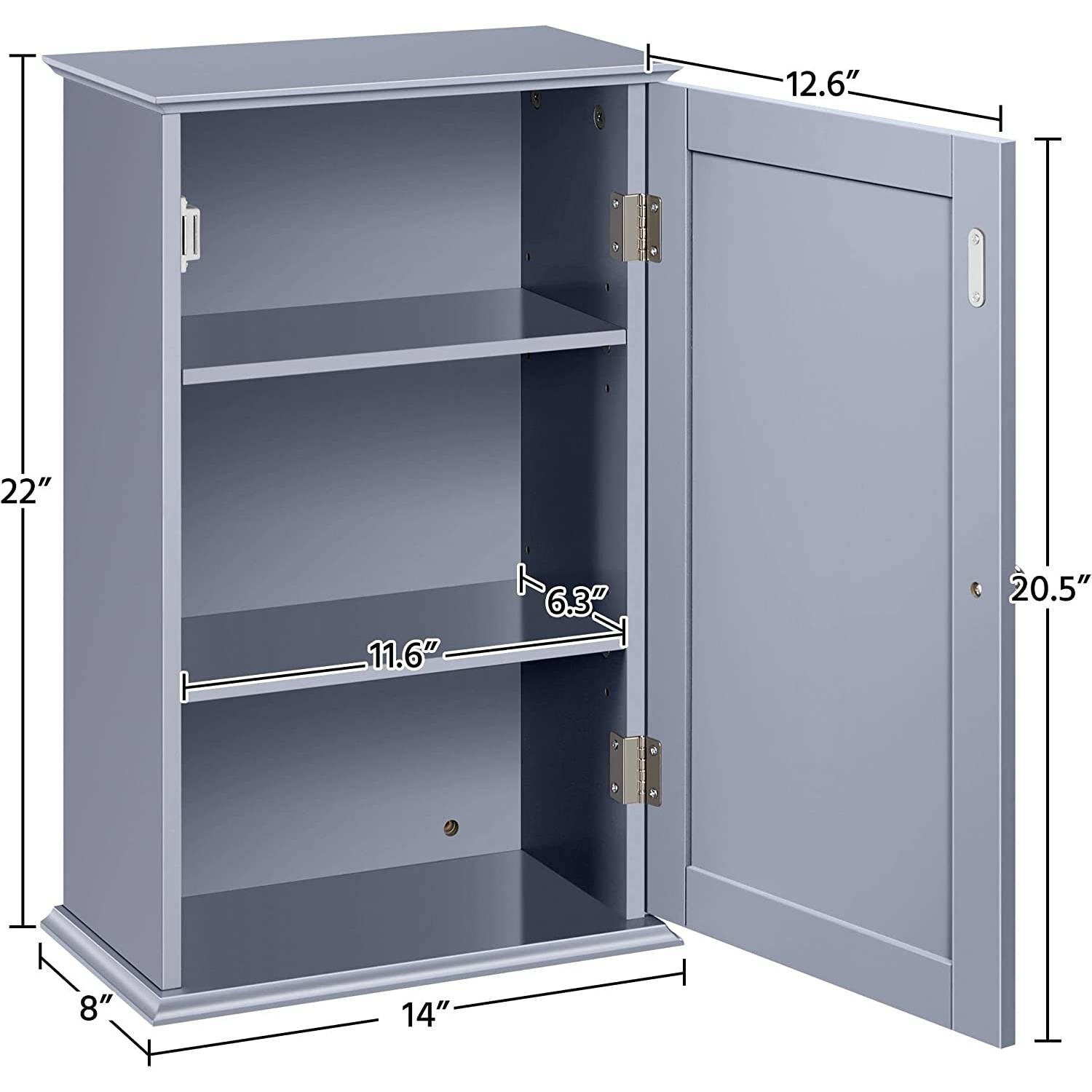 Gray, 1-Door, Wall Mounted, Bathroom, Medicine Cabinet, Kitchen Storage, Cupboard