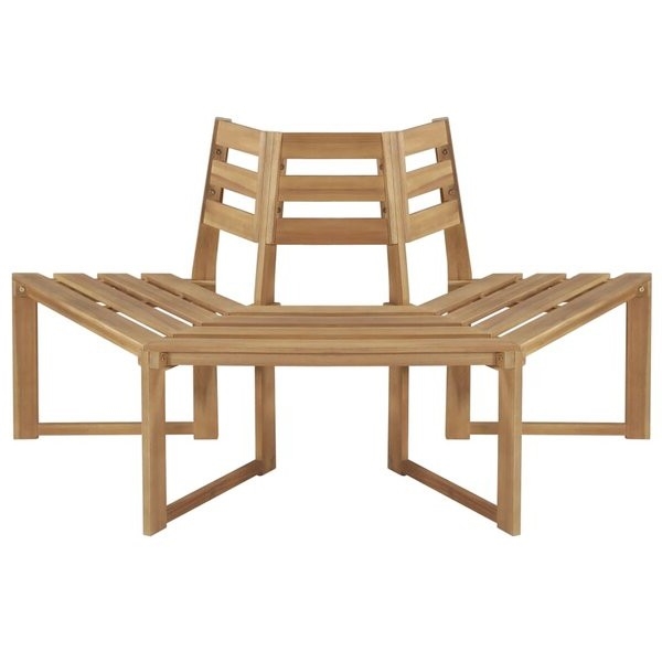 Turn your favorite backyard tree into a comfortable bench. Just like a tree house, only a whole lot easier to sit on with the Half Hexagonal Outdoor Tree Bench in Weather Resistant Acacia Wood. Add a romantic touch to your garden.. The bench can be easily assembled around a tree and form a spacious seating area for you and your family and friends. The bench is highly durable and is easy to clean with a damp cloth. This wooden tree bench combines style, durability, and convenience and will add a timeless design to your garden.