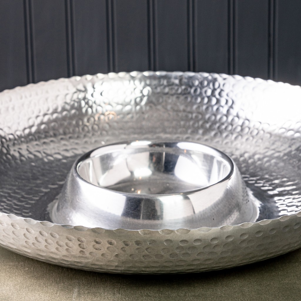 Handcrafted Hammered Stainless Steel Chip and Dip Server