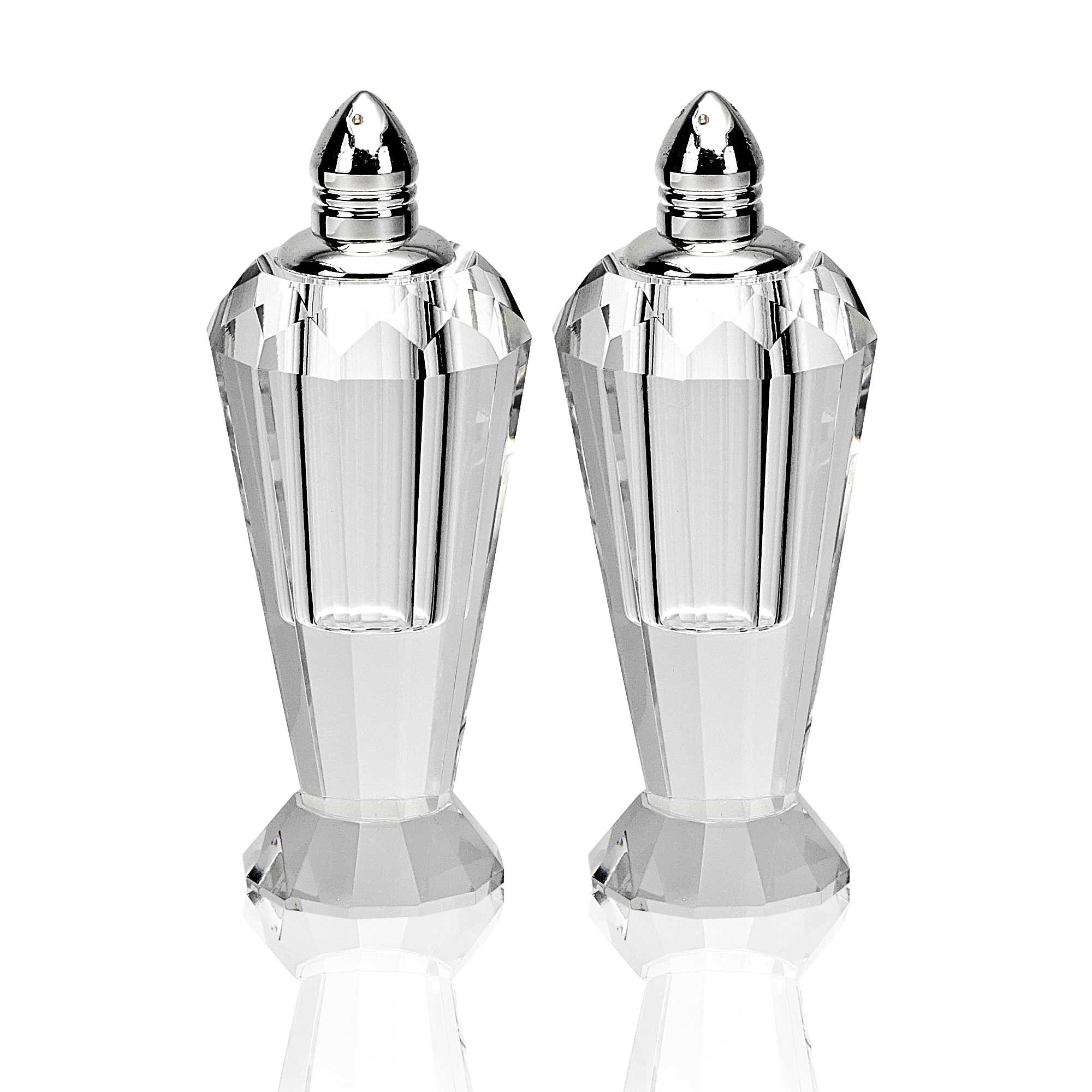 Handcrafted Optical Crystal and Silver Pair of Salt and Pepper Shakers