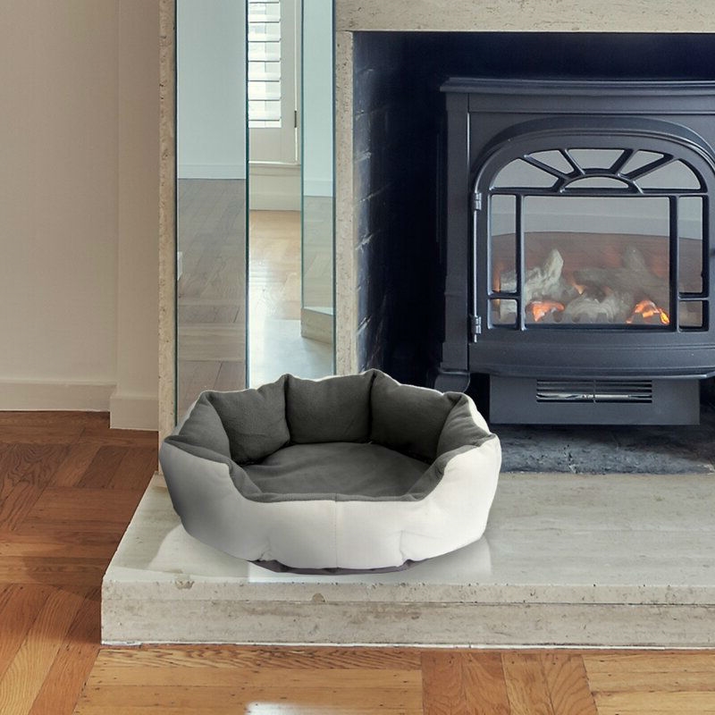 - Ultra soft White Gray Heated Padded Pet Bed