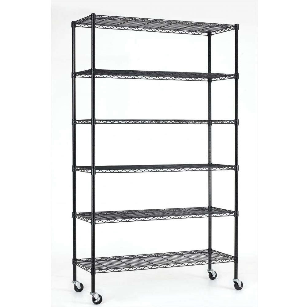 Heavy Duty 6-Shelf Adjustable Metal Shelving Rack with Casters EASY TO ASSEMBLE The storage shelves is easy to assemble, all parts packaged for idiots This wire shelf structure is very simple No tools required to assemble it The shelving unit is simple to assemble You only need to spend fifteen minutes to install it Storage shelves wire shelf wire shelving unit LARGE STORAGE The wire shelf have a lot of room for storage This storage shelves provide an enormous amount of space and strong shelves The shelving unit doesn’t occupy too much space, but it can create more additional space.wire shelf storage shelving shelves unit The shelving unit can take a lot of weight The wire shelf use durable steel construction, and to resist dirt buildup and corrosion The storage shelves is very sturdy Maximum weight capacity per shelf is 220lbs when equally distributed on feet levelers Maximum entire unit weight capacity is 500lbs when equally distributed on casters. shelving unit shelf wire shelves wire This wire shelf is suitable for a wide range of applications You can use this storage shelves in a variety of places, such as the bathroom kitchen garage Tools, books,clothes,bag and other things can be placed on this shelving unit You can adjust the height of the storage shelves according to the size of the item The spacing of each layer of this wire shelf can be adjusted Shelves of the wire shelving unit are adjustable height at 1″ increments Storage shelves wire shelf wire shelving unit