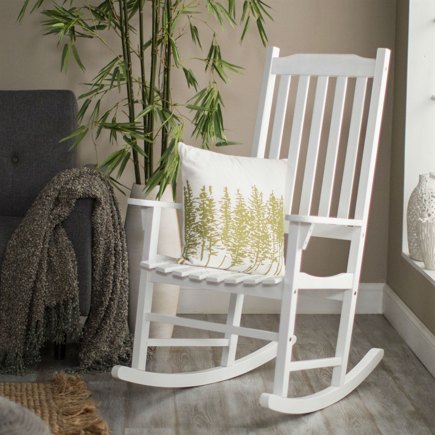 Indoor/Outdoor Patio Porch White Slat Rocking Chair