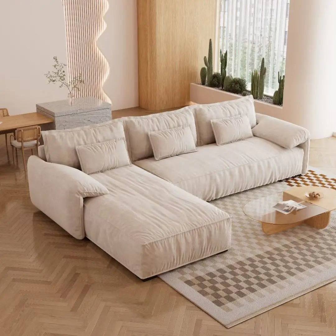 Italian-style modern contracted wabi-sabi small family cream doll cotton living room sofa furniture