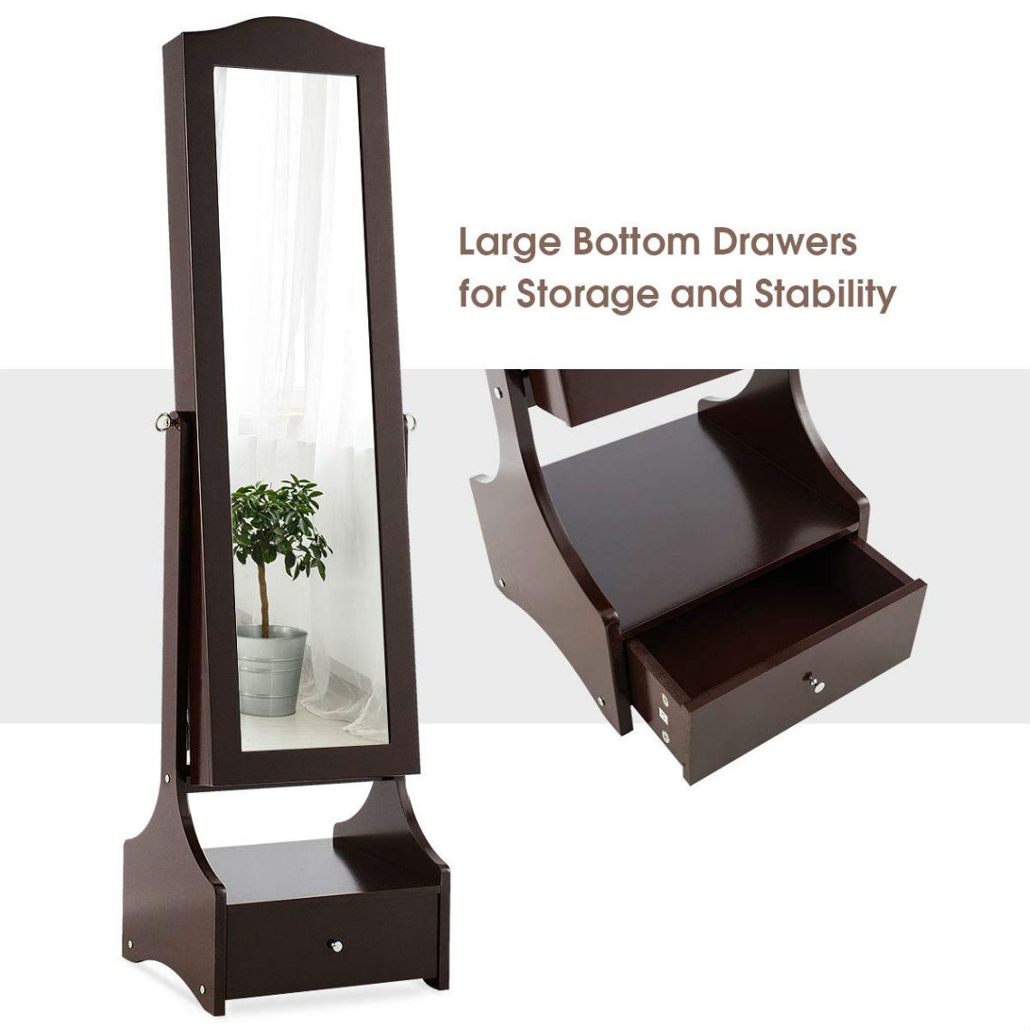 Jewelry Armoire Full Length Cheval Mirror with Tilt in Coffee Brown Wood Finish