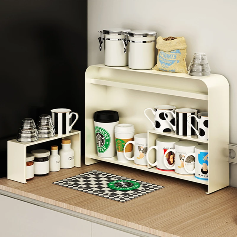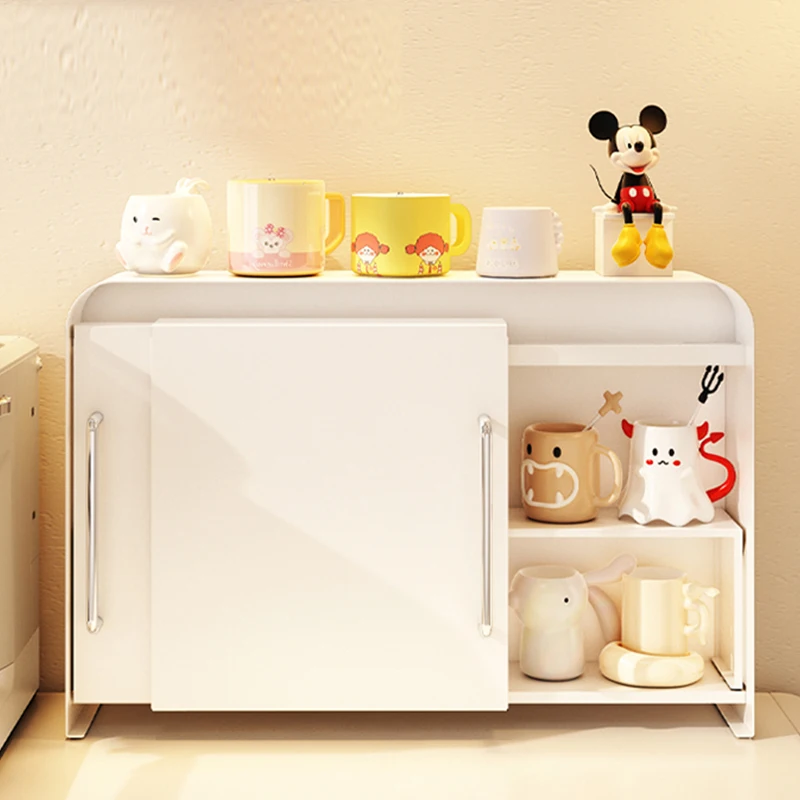kitchen iron capacity storage tableware double-layer season rack shelves box cabinet Countertop cup holder with side pull door