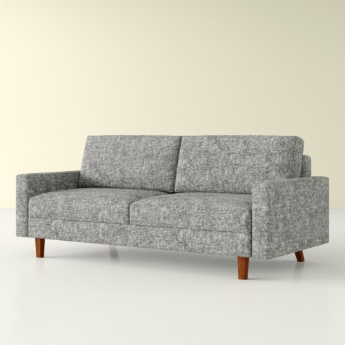 Light Grey Linen Upholstered Sofa with Modern Mid-Century Style Wood Legs