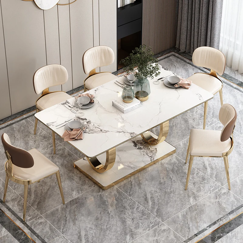 Marble Top Dining Table Set Stainless Steel Leg Glass Outdoor Round Dining Table Set For 8