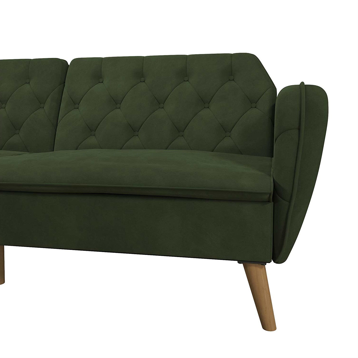 Memory Foam, Futon, Sofa Bed, Green, Velvet Upholstery, Wood Legs