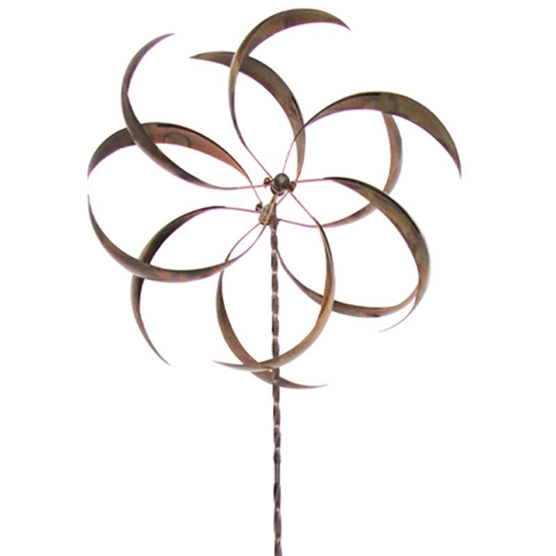 Visually stunning, this Metal Curved Leaf Spinning Outdoor Garden Wind Spinner with Stake is a gorgeous addition to your yard. Beautifully designed with curved blades that spin in opposite directions, the leaves circle around in mesmerizing movement. And the staked bottom means that no digging is required to add this beautiful spinner to your yard.