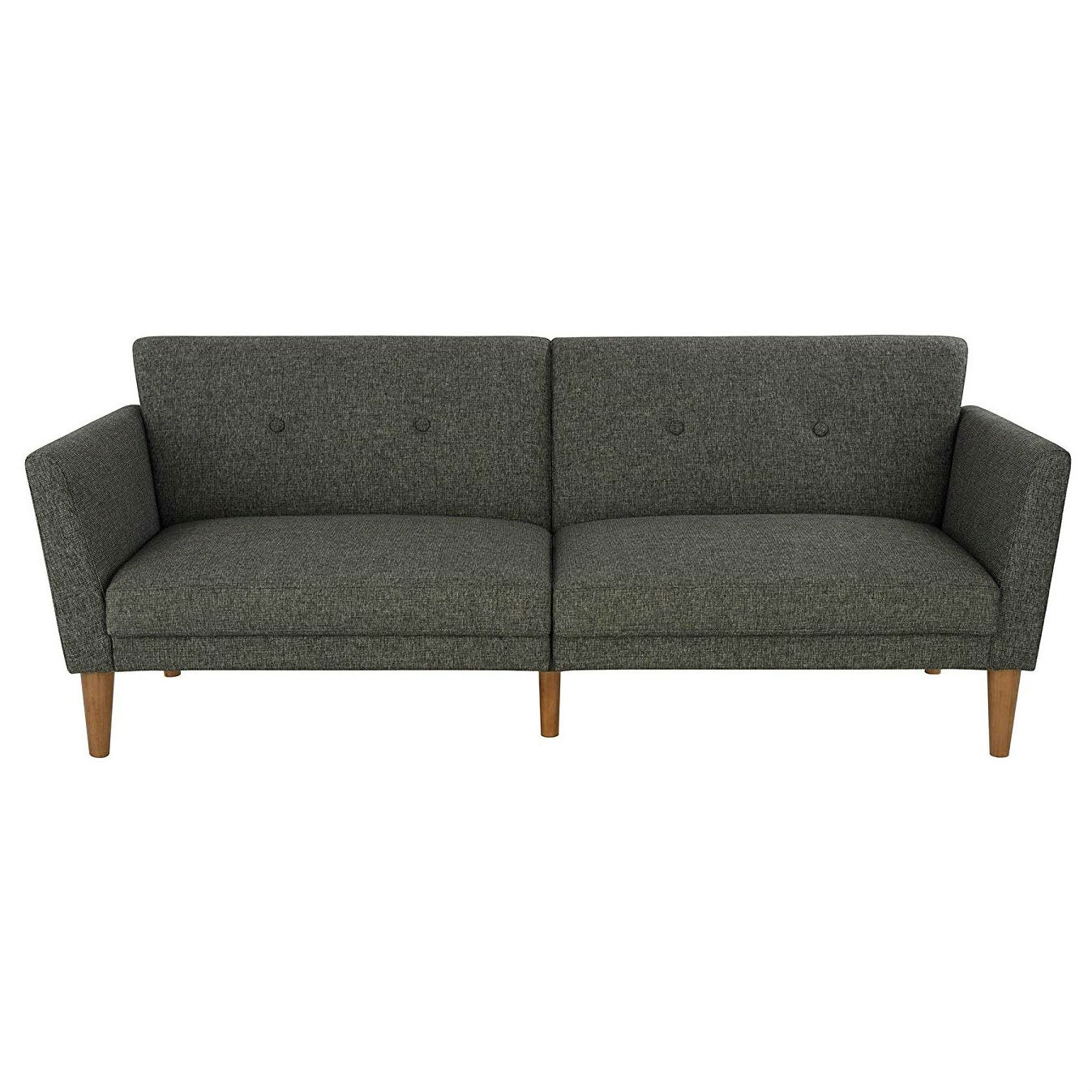 The 1950s are back in a big way, and living rooms across the country are being given a modern twist on the mid-century look that made straight lines and low profiles so popular. This Mid-Century Style Grey Linen Upholstered Futon Sofa Bed with Wooden Legs captures all that and more, with grey linen upholstery, a tufted back, wide winged arms, sleek style, and a wood frame that offers full support. The wood legs round off the look, with extra center legs that provide extra stability. You can also personalize your comfort level thanks to the split back, which allows you and a guest to each sit up or lounge back. Or simply open the Mid-Century Style Grey Linen Upholstered Futon Sofa Bed with Wooden Legs up into a Sleeper sofa for overnight guests to spend the night. We’ve also added padding under the feet to protect your floors. Just add the Mid-Century Style Grey Linen Upholstered Futon Sofa Bed with Wooden Legs to really complete the look!