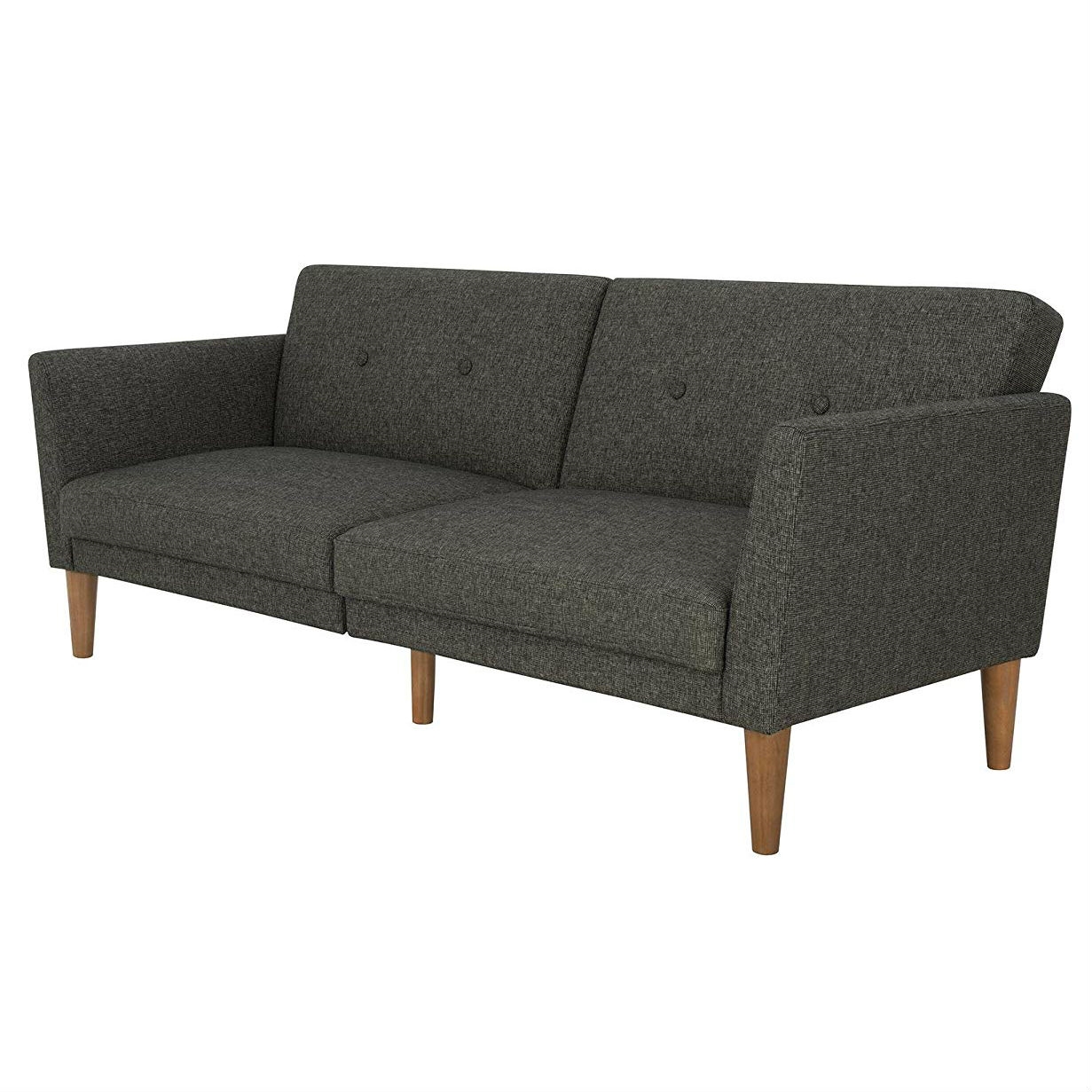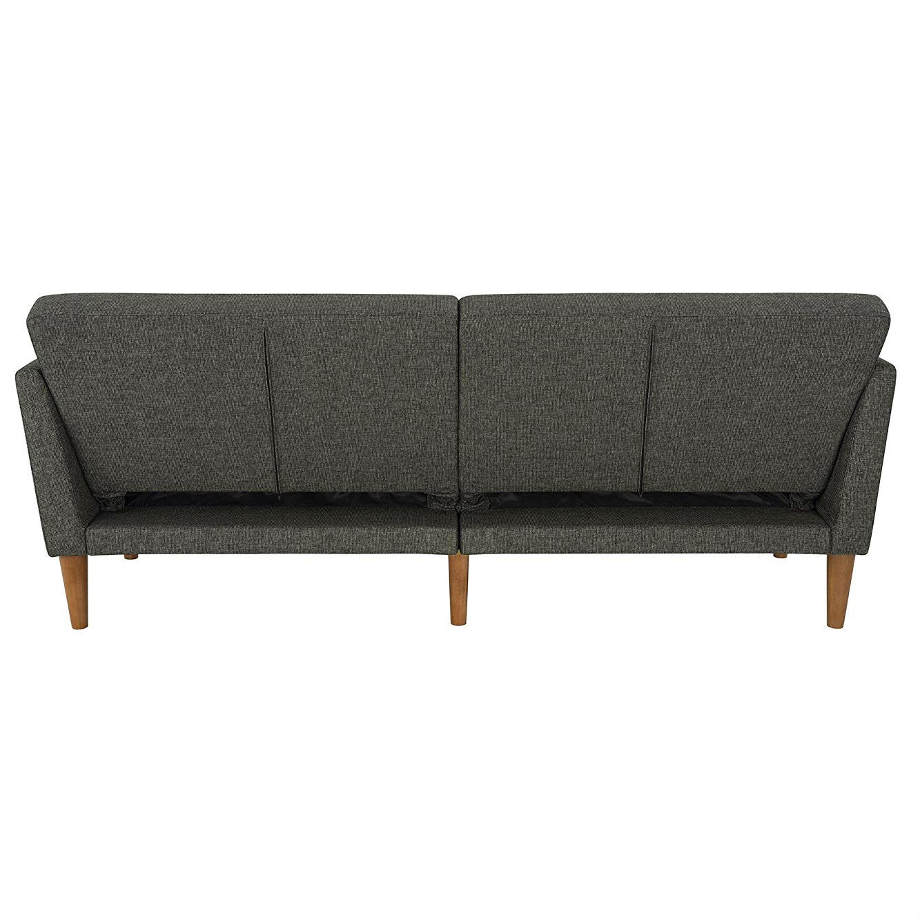 - Mid-Century Style Grey Linen Upholstered Futon Sofa Bed with Wooden Legs