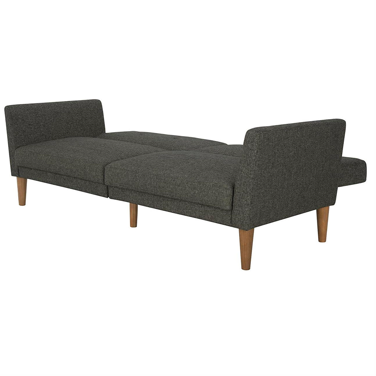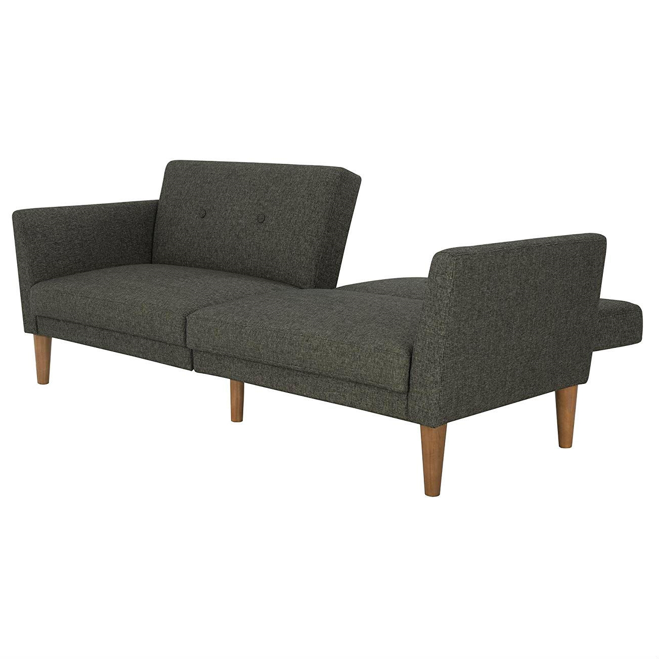 Mid-Century Style, Grey, Linen Upholstered, Futon, Sofa Bed, Wooden Legs