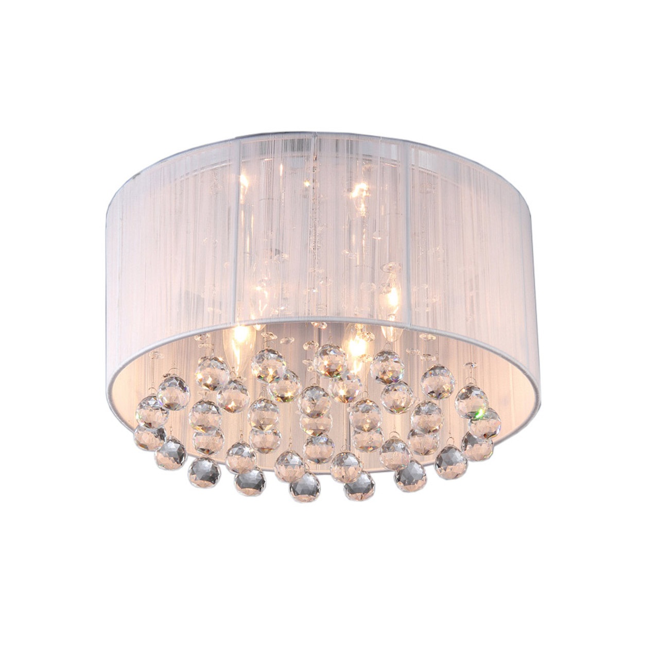 Give your room’s decor a dramatic focal point with the Mineya 5-light White 17-inch Chrome Swag Lamp. The light fixture features a host of large crystals under the drum shade that catch the light and make the room sparkle.