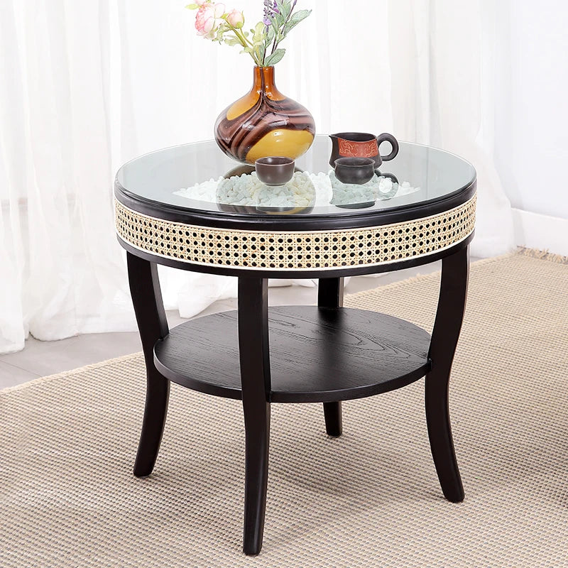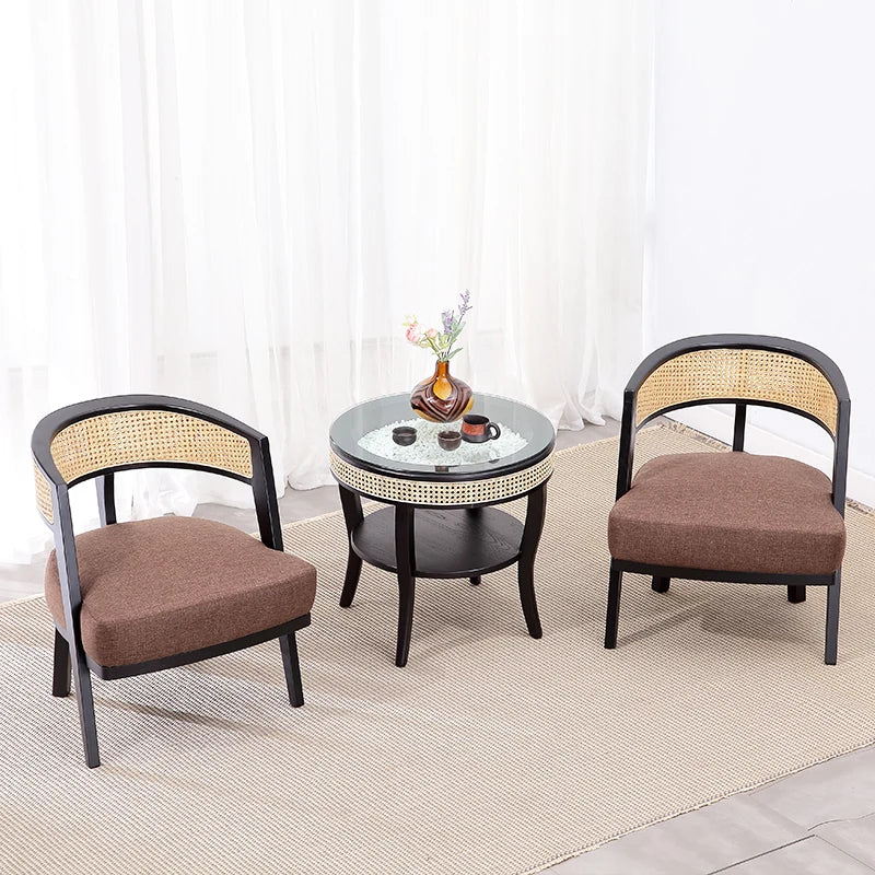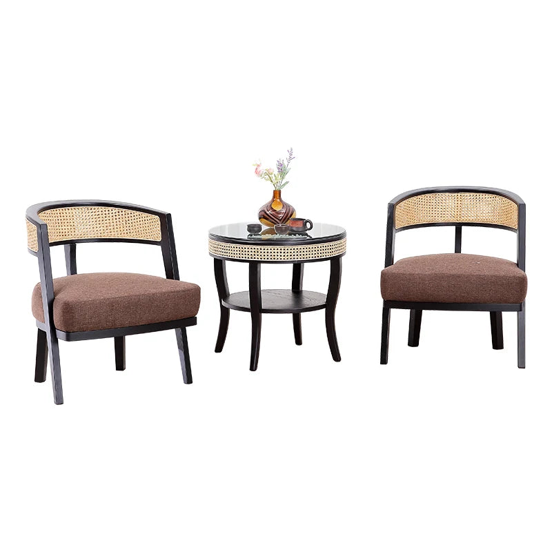 Minimalist solid wood woven rattan lounge chair coffee table set guest room living room balcony furniture