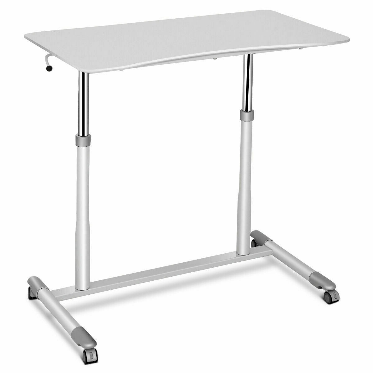 Mobile Adjustable Height Sit Standing Stand Up Desk White