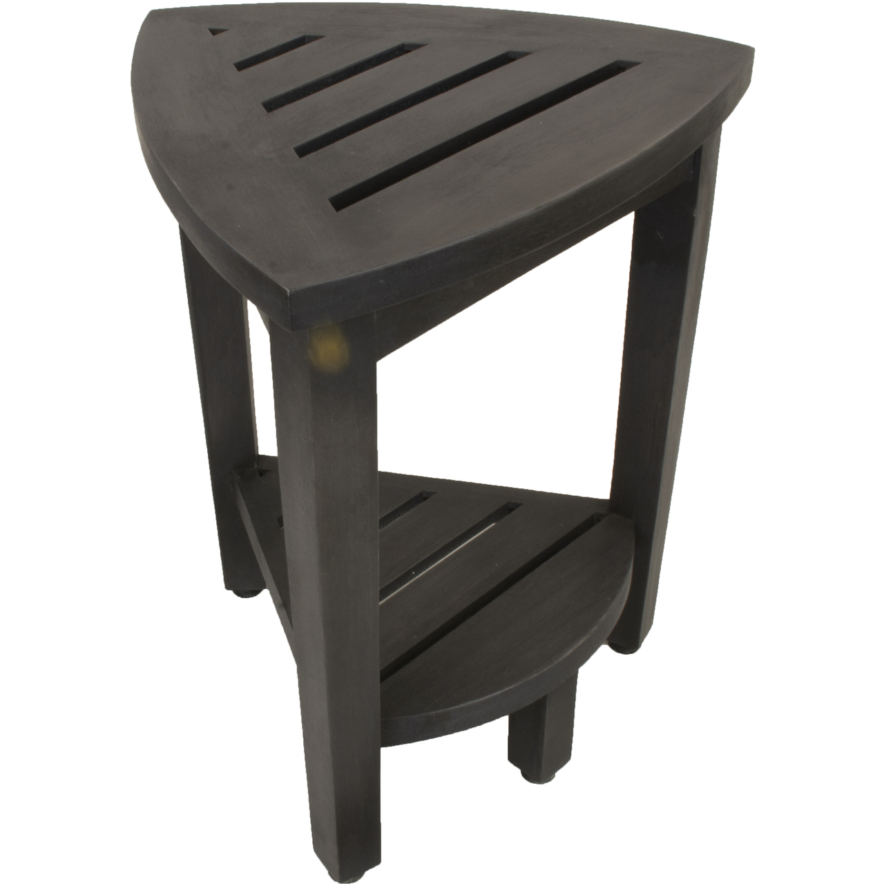 High end designers will love the look of this premier Mod Tri Gray Teak 18″ Curvilinear Corner Shower Bench with Shelf. Extremely versatile in design and use, this sustainably harvested solid teak wood bench is great for the shower, the bathroom, the family room, poolside or porch. Use as a seat, use as shelf, use a plant or accessory holder. Compact in footprint, this seat is perfect for any corner or space you might need and includes a bottom shelf for a little bit of additional storage. The slightly arched edges of the triangle give this still a bit of modern elegance and bring a contemporary feel to your space. Built to last, this hearty bench is made of real teak which is known for it’s durability and resitance to water and mold. 18″ x 15″ x 15″