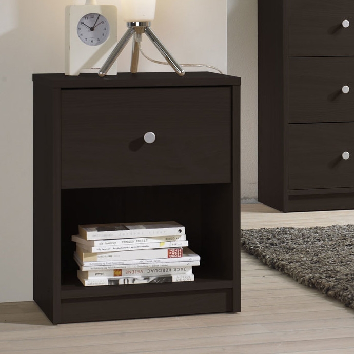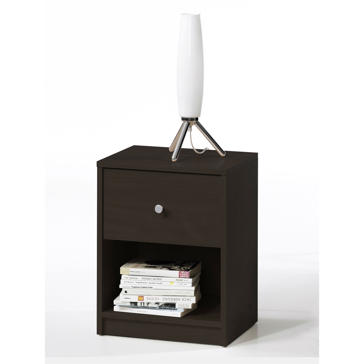 - Modern 1-Drawer Bedroom Nightstand in Dark Brown Wood Finish