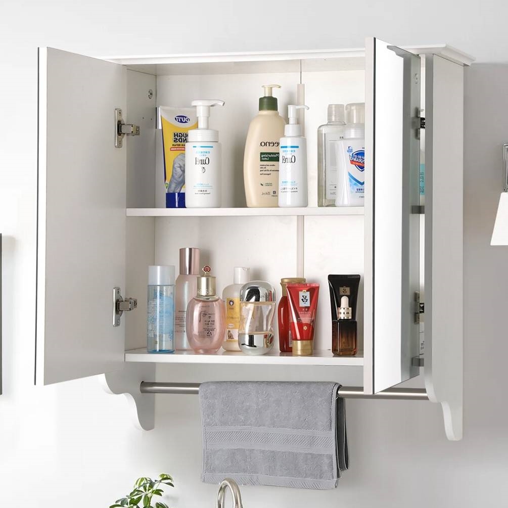 Modern, 2-Door, Wall Mounted, Bathroom, Medicine, Cabinet, Mirror, Towel Bar