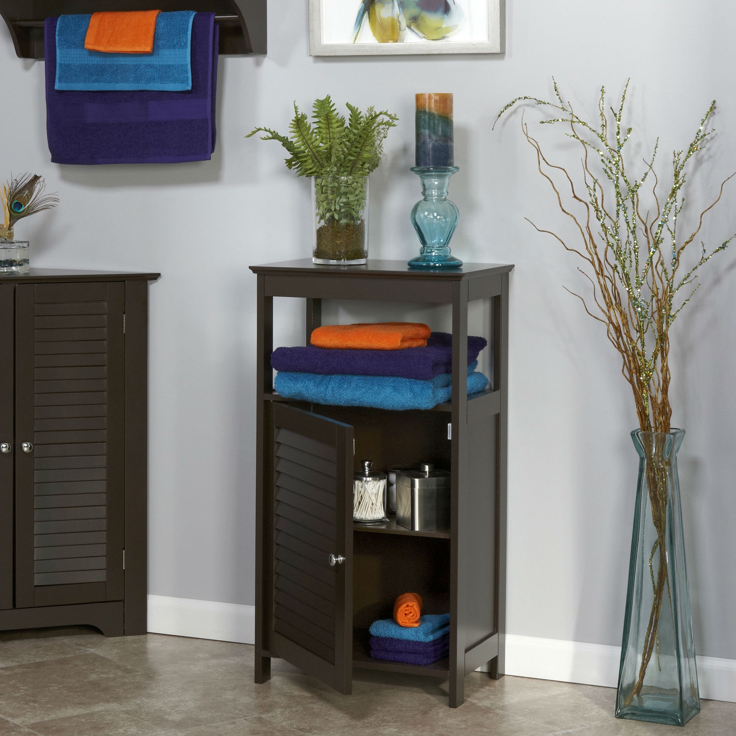 - Modern Bathroom Floor Cabinet Free Standing Storage Unit in Espresso Wood Finish