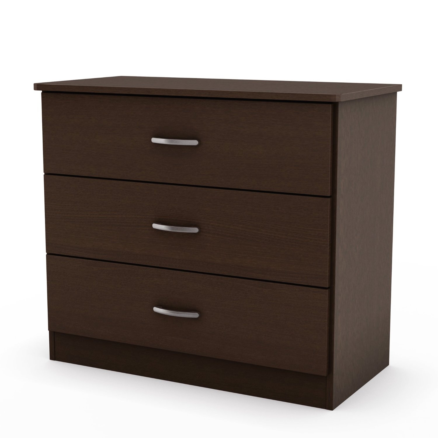 - Modern Bedroom Storage Chest 3-Drawer Dresser in Dark Brown Chocolate Finish