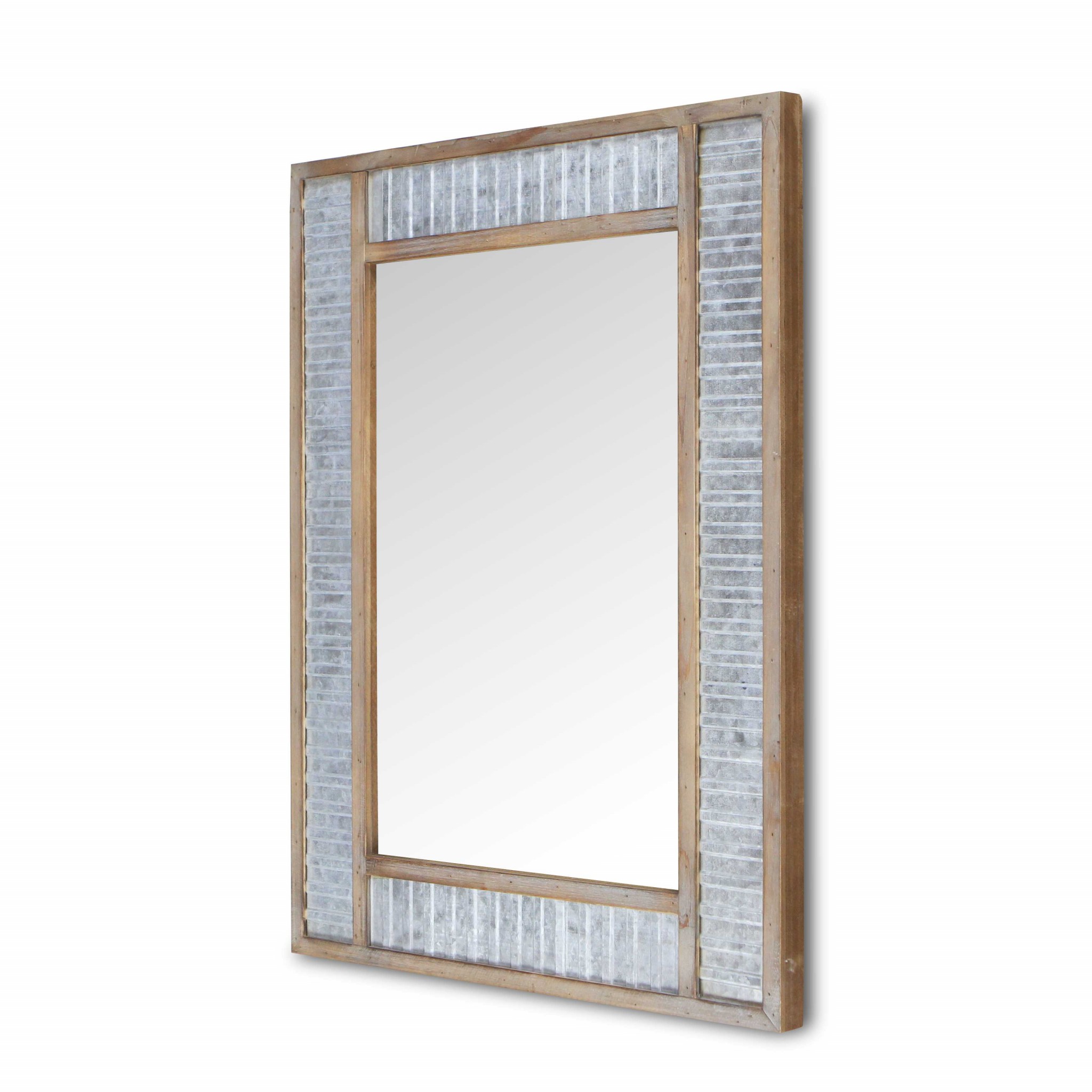 Modern Farmhouse Rectangular Wood and Galvanized Metal Wall Mirror