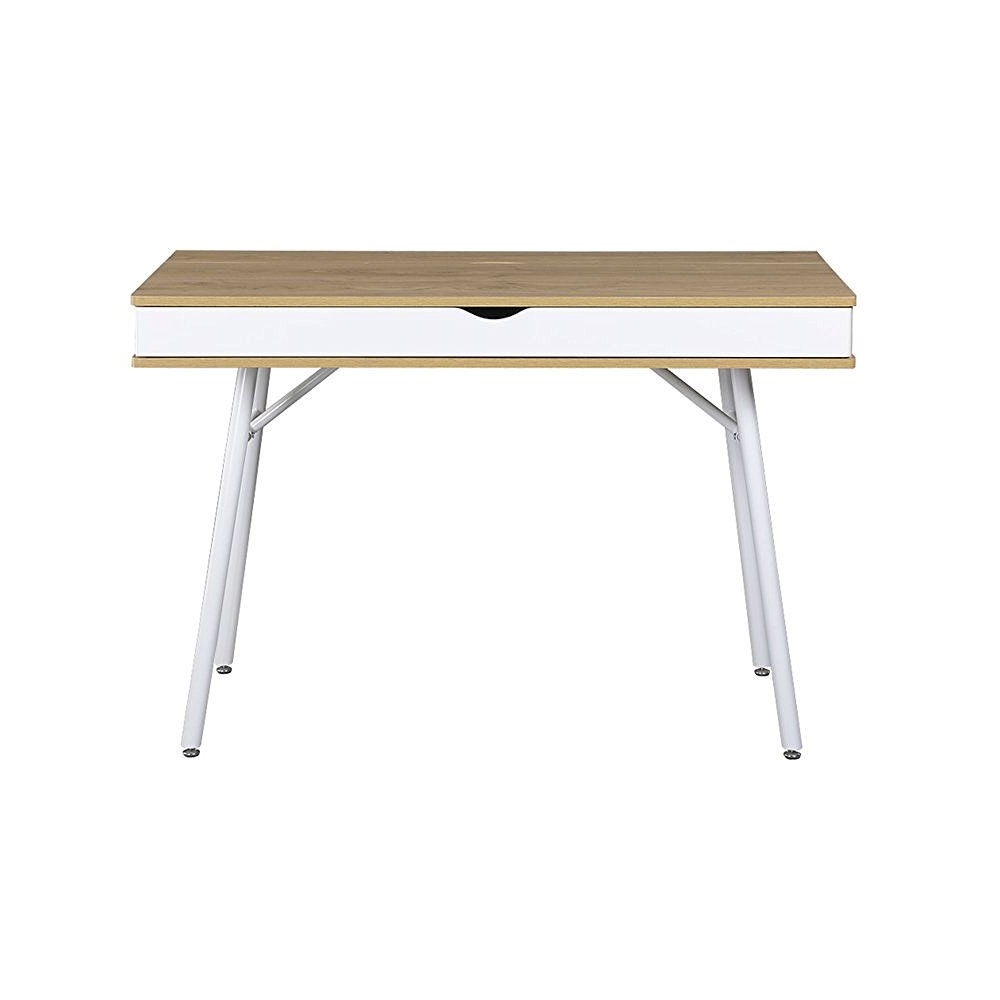 Modern Heavy Duty Laptop Computer Desk with Storage Drawer in Pine Wood Finish