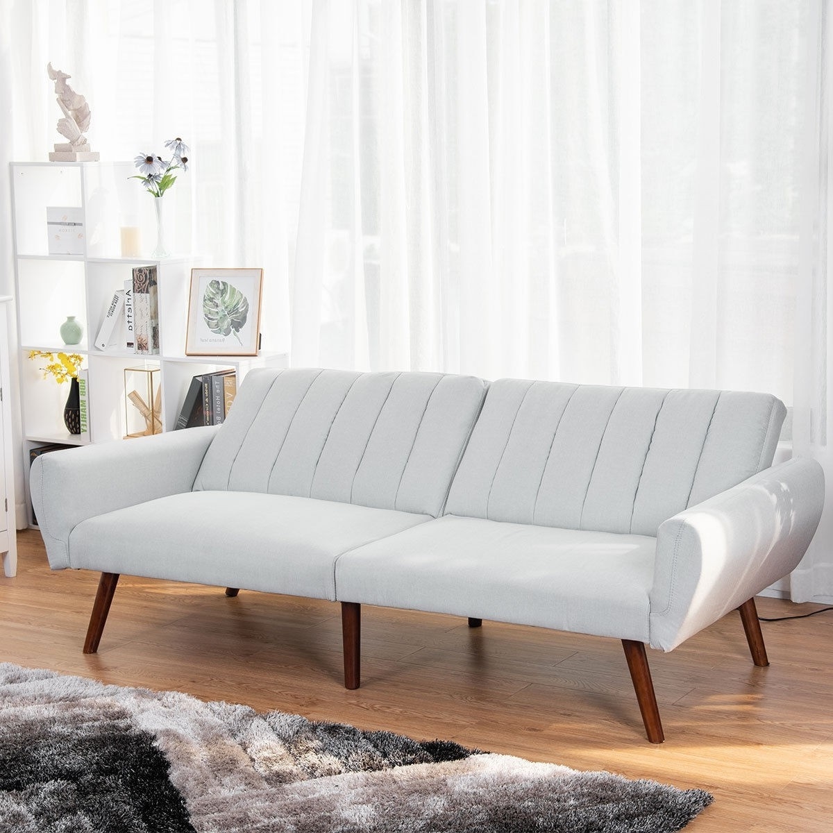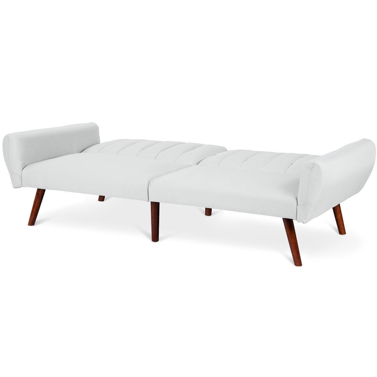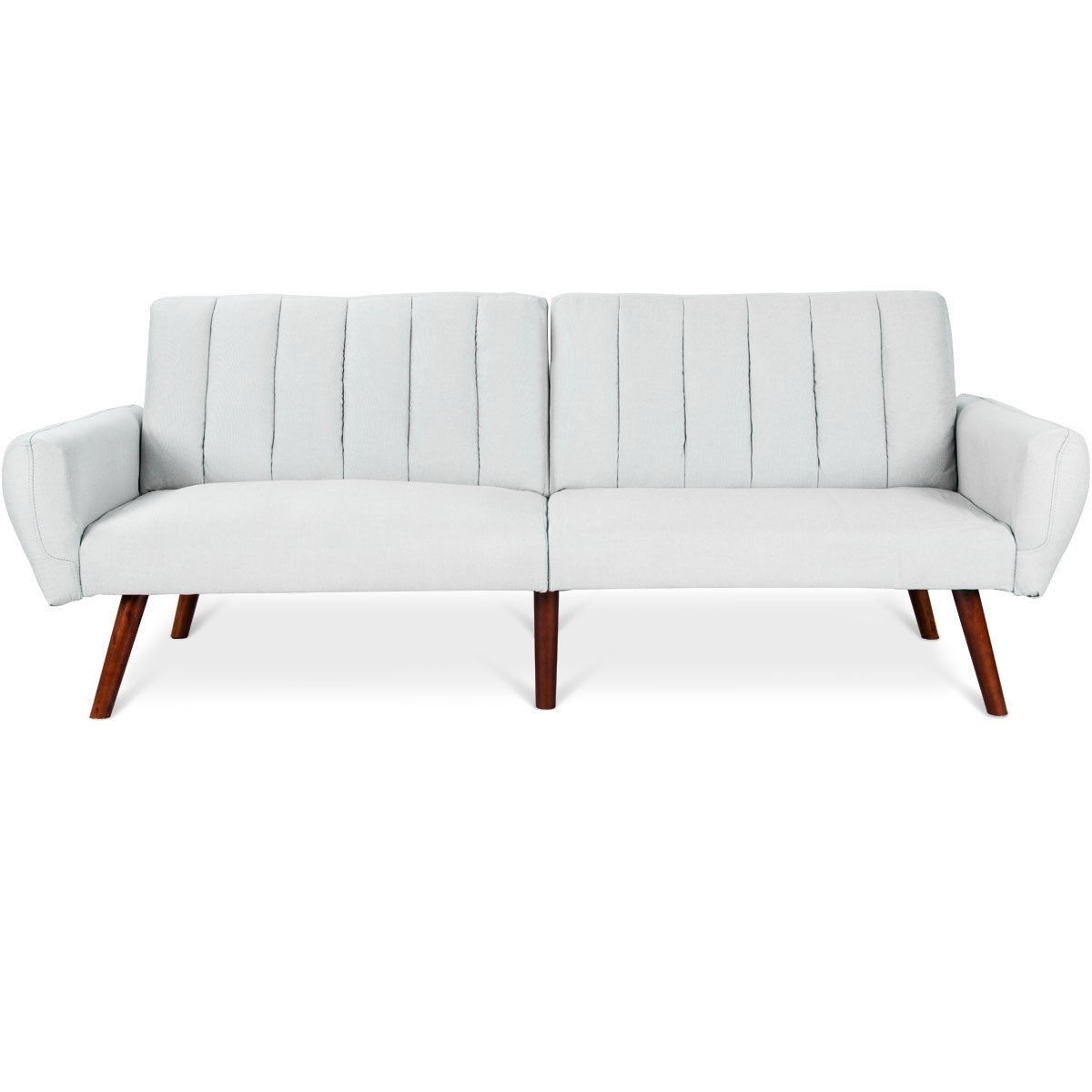 Modern, Mid-Century, Grey Linen, Split-Back, Futon, Sofa Bed, Couch
