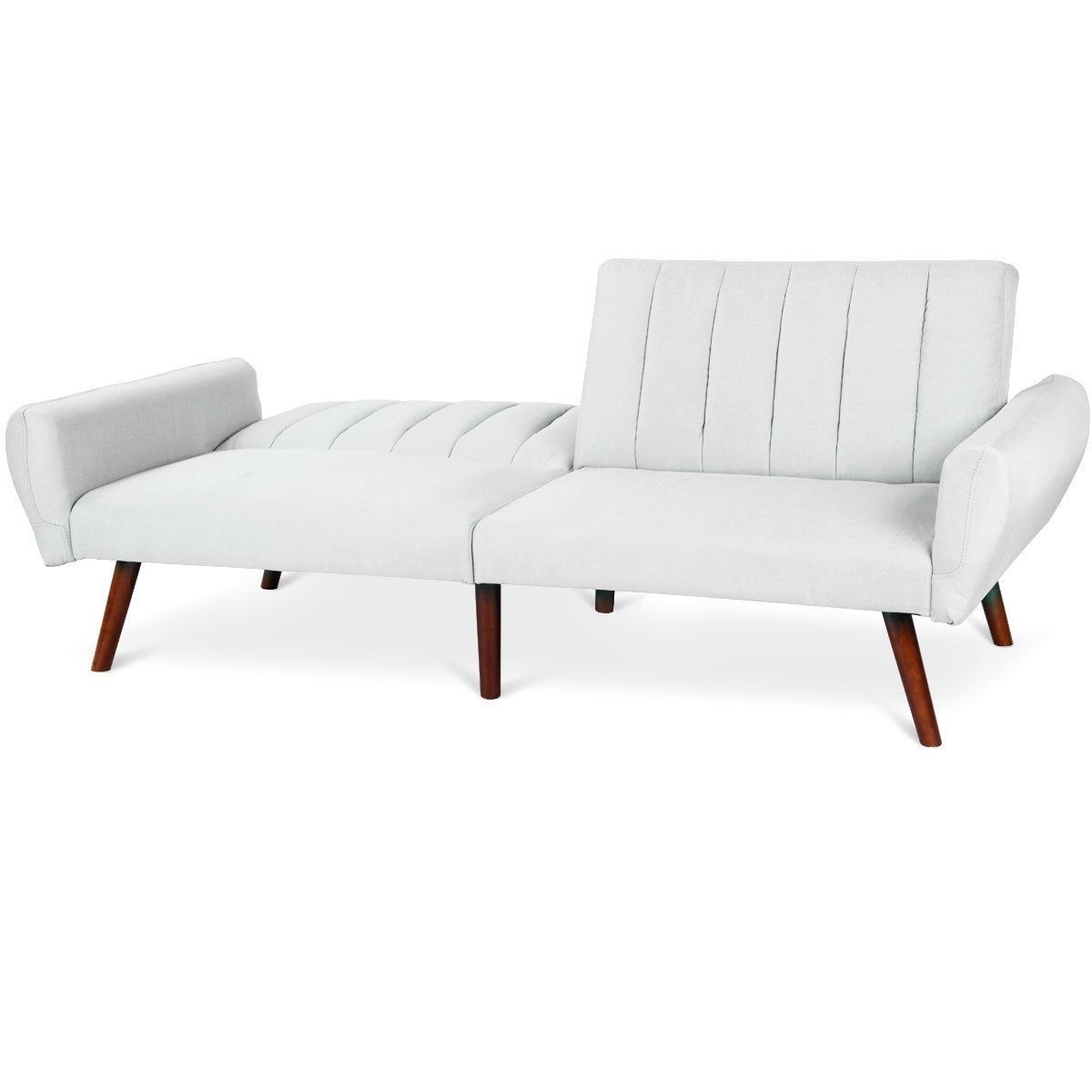 Modern Mid-Century Grey Linen Split-Back Futon Sofa Bed Couch Brand new and high quality 5 Position recline angles with a range of 90°-180° Wood frame and wooden legs with non-slip mats for durable and resistant Breathable premium linen, poisonless and tasteless, wear-resistant and anti-static Upholstered seat stress distribute uniformly, soft and comfortable A carefully crafted dinning modern chair, neat stitches, seamless transition Elegant and graceful, add a sleek contemporary vibe to your dining space User friendly design for easy cleaning Color: As pictures show Material: Cloth, sponge, wood Package: 1 x Sofa bed