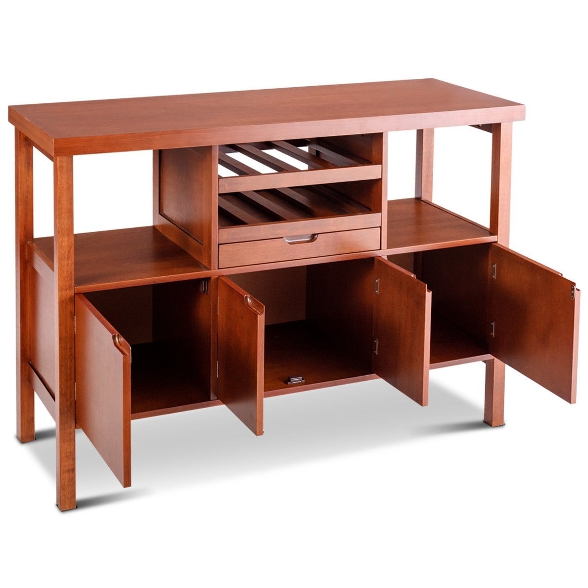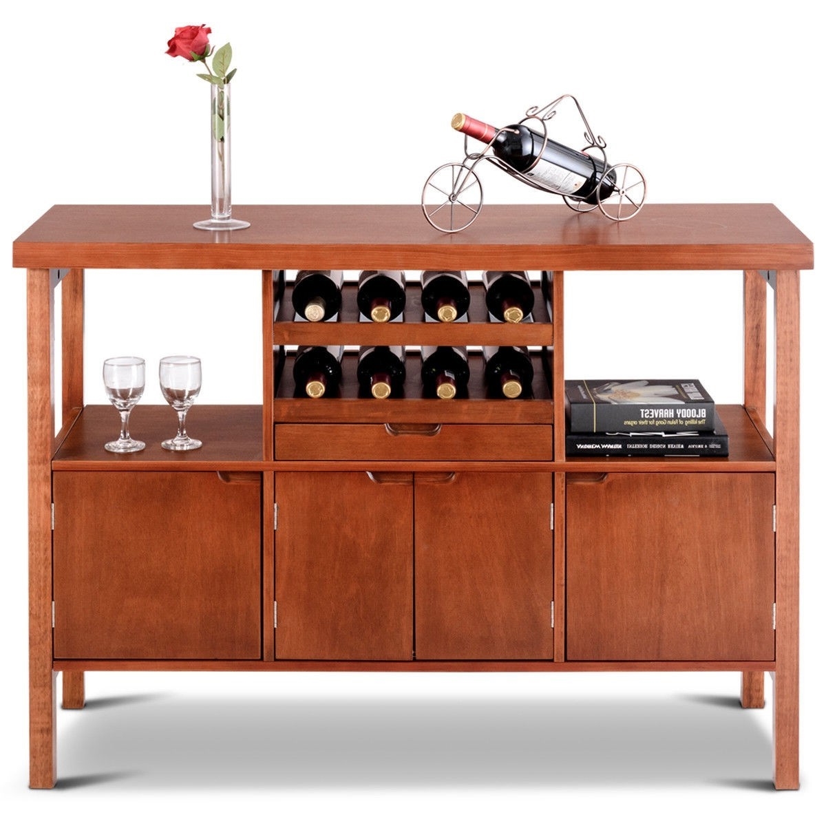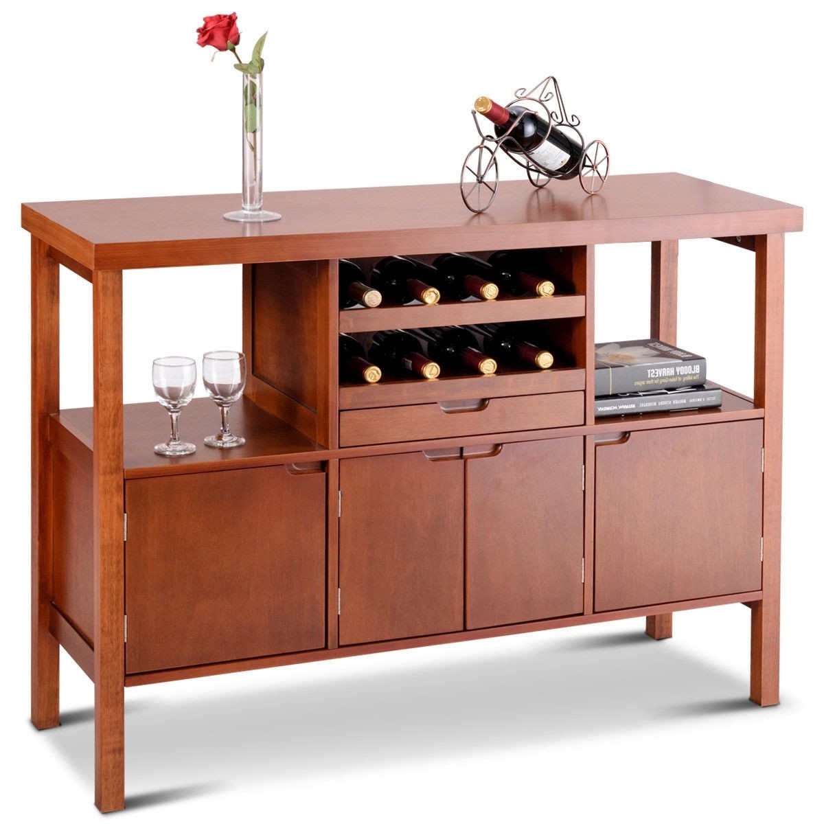 Modern Sideboard Buffet Cabinet with Wine Rack in Brown Wood Finish