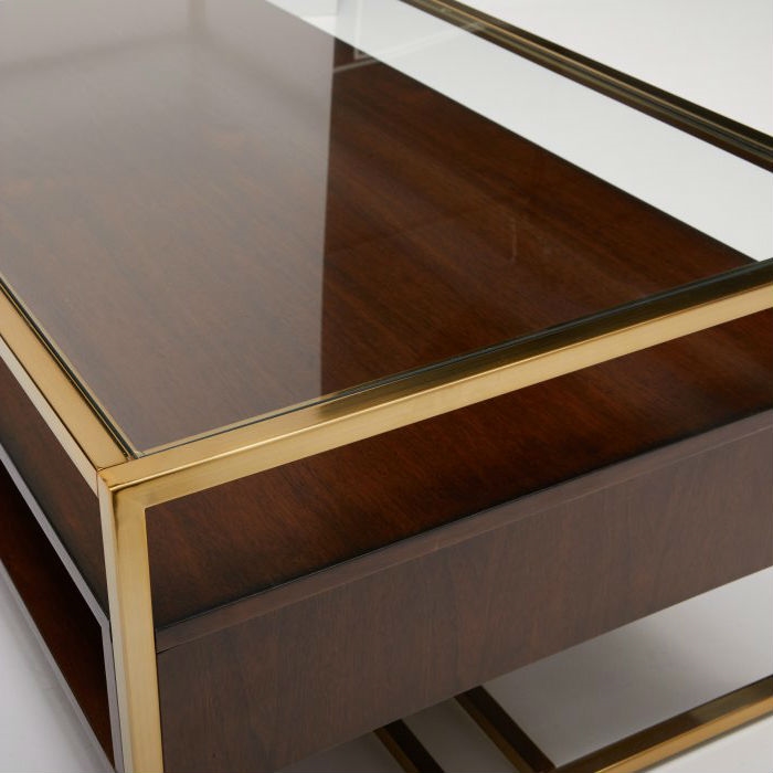 Modern, Classic, Vintage Style, Coffee Table, Wood Top, Metal Legs, Steel, Brass-Plated, Walnut, Glass Top, Retro